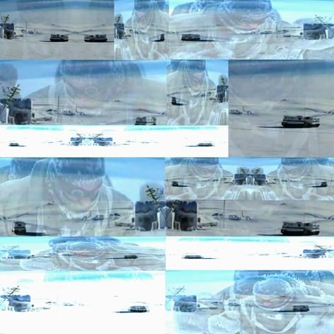 “Una scenografia evocatrice dei bianchi spazi polari fa da suadente contorno alla presentazione di due opere video e di una composizione fotografica. Attraverso la ciclica ripetizione di immagini e sequenze tratte da lavori televisivi o cinematografici preesistenti, Lino Strangis suggerisce all'osservatore una meditazione sull’imponenza degli ostacoli spazio-temporali che inevitabilmente la natura contrappone ai progetti umani. La vicenda che l’autore indica a sostegno concettuale dell’allestimento è quella della spedizione Terra Nova verso il Polo Sud, intrapresa nel 1910 al comando del capitano Falcon Scott e culminata in un tragico fallimento.” (Carlo Gallerati)