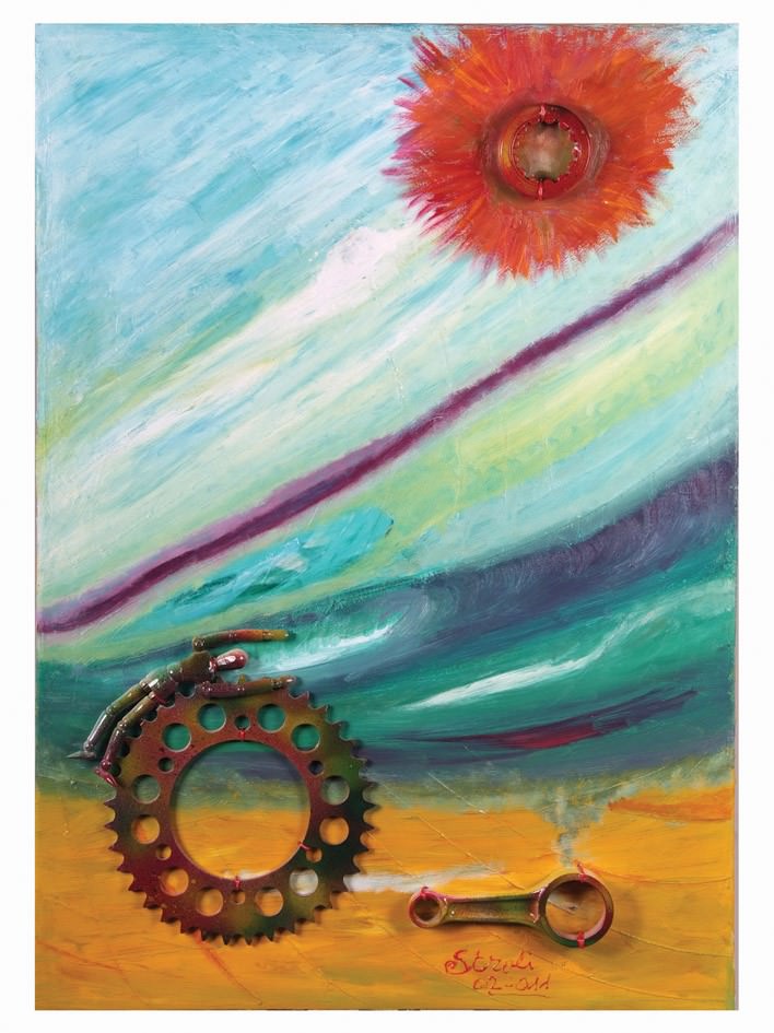 con l’esposizione dal titolo “La macchina del tempo”, nel foyer del Teatro della Vittoria a Palazzo del Popolo di Sarnano, è Lino Stronati, in arte Stroli. Il suo chiaro percorso espressivo, sganciato da correnti e mode, individua l’uomo e il suo attuale disagio sociale come primo committente. Il tema costante dell’opera di Stronati si sviluppa tra la “piccola” quotidianità familiare e i sistemi di potere che opprimono speranze ed imprescindibili aspirazioni individuali.