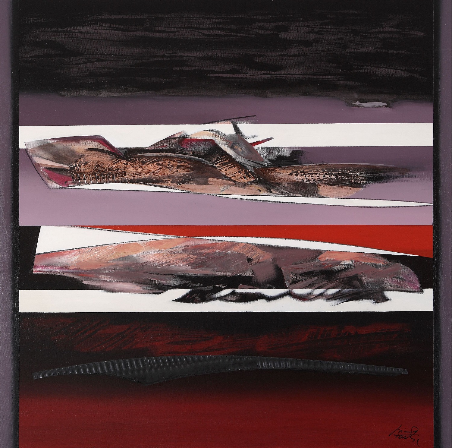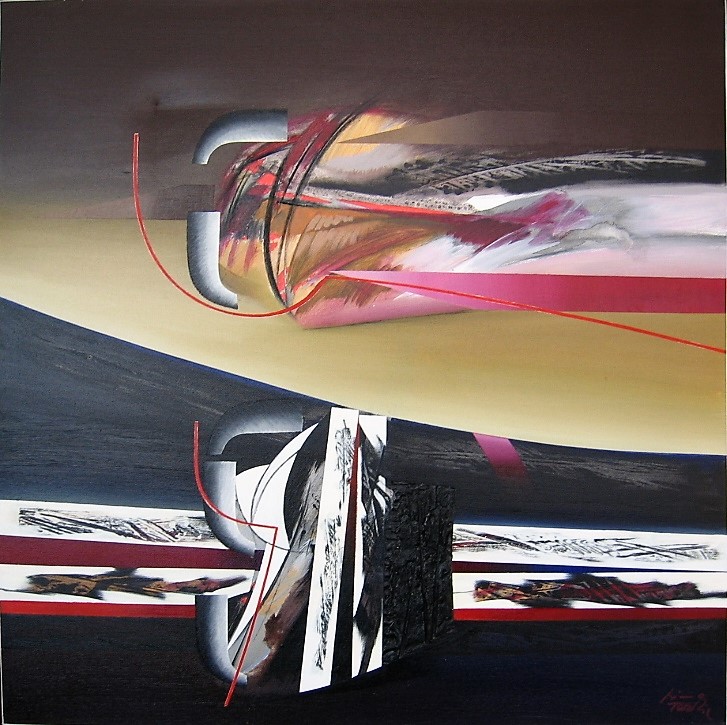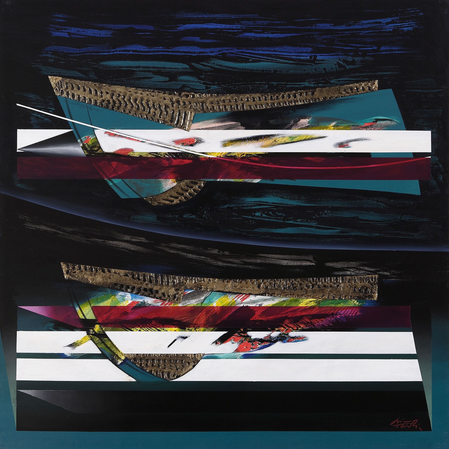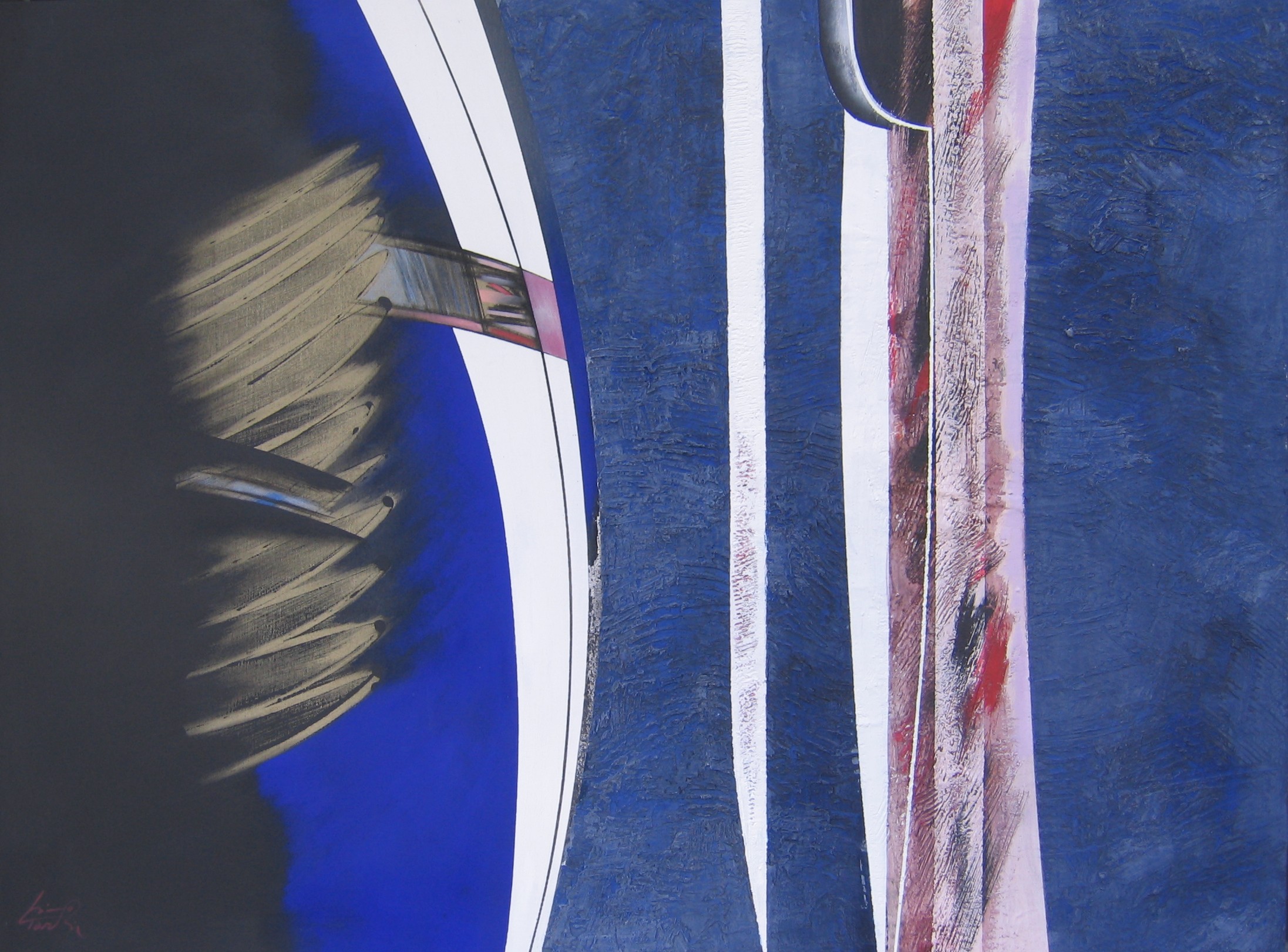 E nell’altro contributo in catalogo, Aldo Gerbino finemente osserva che “La necessità linguistica di Lino Tardia appare, dunque, impregnata d’un focus dinamico ovattato da un’esigenza gestuale sciolta tra adeguati confini geometrici; una lingua percorsa da tagli baconiani, comparata con masse pigmentarie atte ad alimentare, nel bozzolo di una cromia mediterranea, l’esigenza a coagulare faglie, ampliare dicotomie sostenute da memorie, stringhe famigliari”.