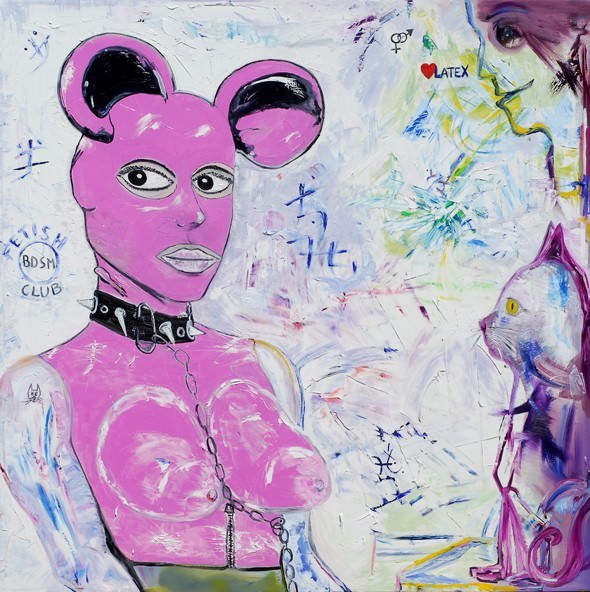 L’artista gioca con linguaggi disparati e crea con i neon la sua personale visione della vita erotica umana.
