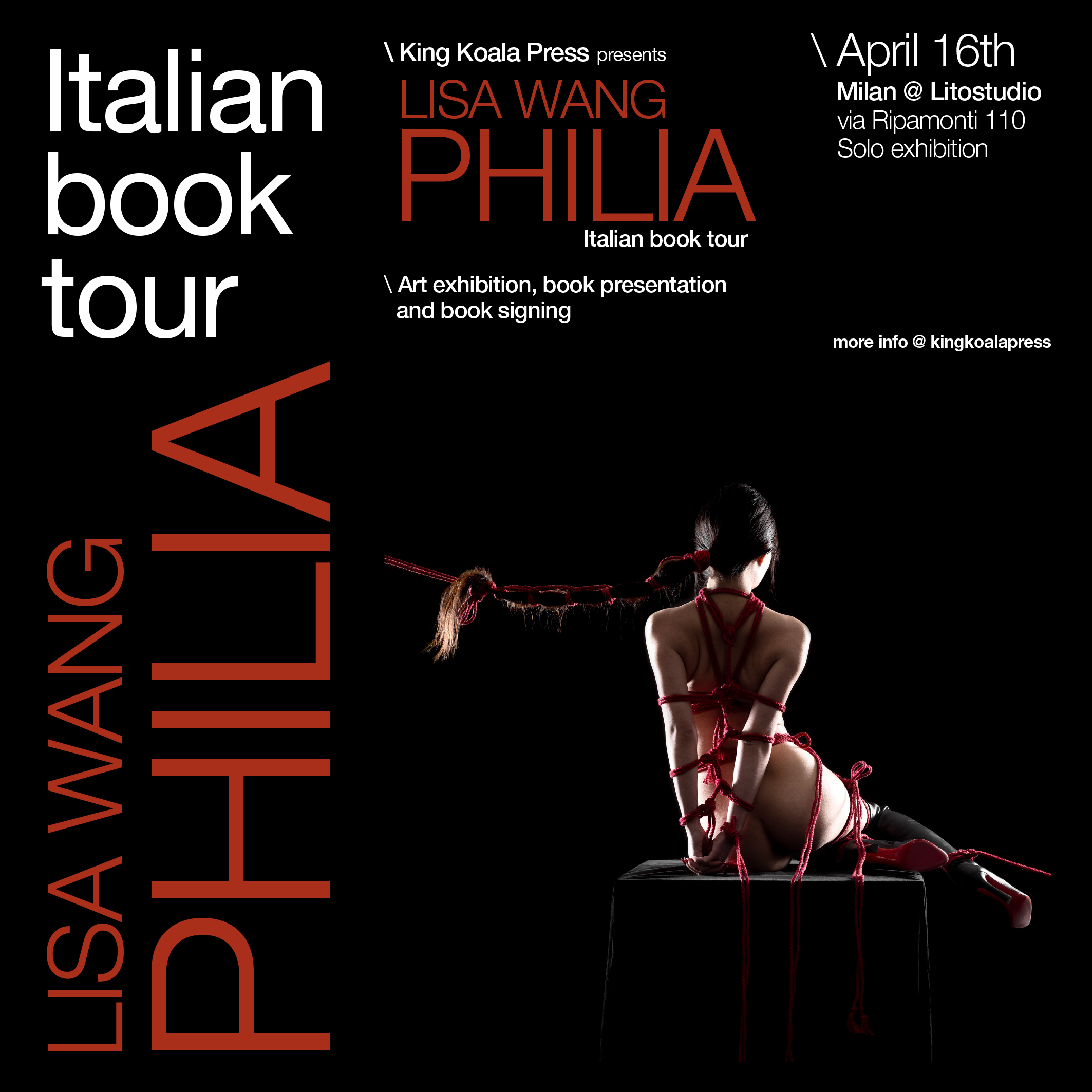“PHILIA nasce da un incontro a NYC con una giovane artista fotografa in un bar di Manhattan. Presentatami dal grande Tom Banger, Lisa mi ha mostrato questo lavoro di indicizzazione, frutto di una analisi profonda che ha unito il suo passato con la sua attitudine espressiva, incanalando tutte le “perversioni” incontrate lungo il suo percorso. Ho capito subito che si trattava di un progetto artistico che poteva parlare a livello universale, pur partendo da uno spunto individuale perché l’immagine di Lisa Wang è chiara, matura, consapevole e attenta al dettaglio. Da quell’incontro è nato un libro, un codice alfabetico e fotografico che porta il nome del progetto stesso.”