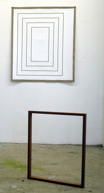 Tutto il suo lavoro, anche quello apparentemente più formale o minimale possiede alla base una struttura letteraria. Un esempio è la serie di “tapestries” in mostra, tele in lino dipinte con strati di acrilico e smalto. Limitati a pochi colori e forme questi lavori rappresentano delle pause, degli schizzi iniziali in cui forme semplici e ripetitive rappresentano un potenziale strumento di sviluppo e di comprensione.