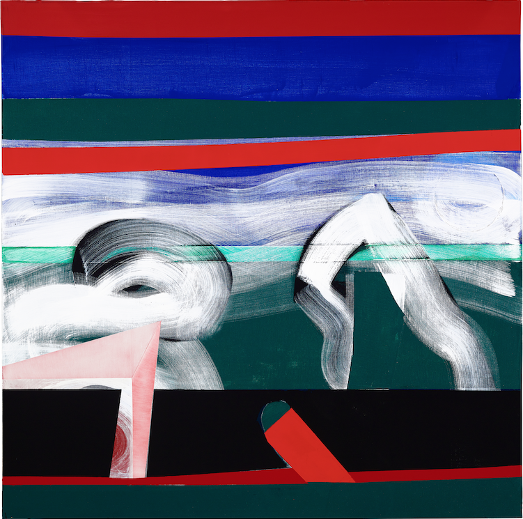 Se infatti, a un primo sguardo, i lavori di Liu Ke sembrano del tutto aniconici, dominati da campiture cromatiche intense — rossi accesi, verdi smeraldo, blu oltremare —, osservando con maggiore attenzione si scopre che quelle superfici astratte sono in realtà impressioni di paesaggi: luci vespertine, albe con soli che emergono dietro le montagne, mari e cieli; oppure, quando le curve si fanno più intricate e contorte, allusioni a corpi e figure impegnate nell'atto sessuale. In questi lavori, segni sintetici e condensazioni cromatiche non rivelano direttamente l’immagine, ma ne distillano la percezione, attivando uno spazio mentale e sensibile nello sguardo dello spettatore. L’astrazione, in Liu Ke, non è mai fuga dalla realtà, ma un processo di sintesi percettiva e di intensificazione dell’esperienza visiva.