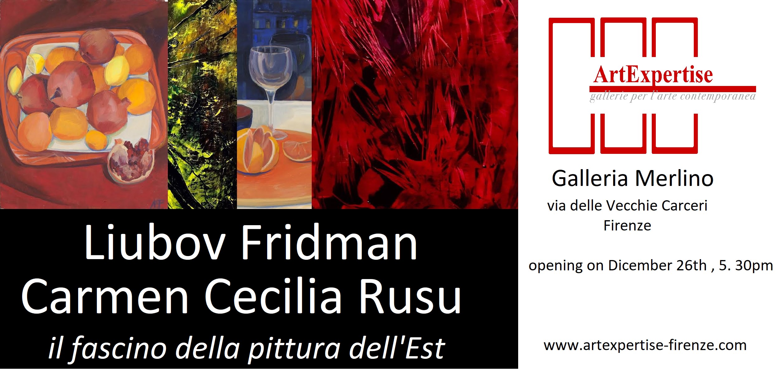 Il fascino della pittura dell’Est attraverso le opere di due diverse artiste. Dal mondo figurativo di Liubov Fridman, alle astrazioni di matrice informale di Carmen Cecilia Ruso.