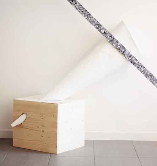 Simona Luchian, con L’incastro, ha ragionato sul processo mentale, i pensieri, le idee che accompagnano la costruzione delle immagini. Lo spunto è Opera Miracoli per Negarli di Manuela Cirino, un progetto aperto che prevede la custodia di un lavoro, una scatola chiusa, da parte dei visitatori della mostra. Simona Luchian ha custodito la scatola per un mese e con L’incastro ha realizzato una scultura che riflette la relazione che si è creata tra lo spettatore (lei) e l’opera stessa, dislocata e vissuta. Solo una volta dislocata infatti la scatola poteva essere aperta. Il processo scultoreo de L’incastro rimane però un momento preparatorio e accessorio, l’esito della ricerca si traduce infatti in un’immagine bidimensionale; come ci dice Luchian, nel distruggere l’ingombro materico dopo avere scattato le fotografie, “il progetto si rivela un atto performativo in cui si mostra l’annullamento (o il potenziamento!) del contatto con il mondo fisico nel diventare immagine di cui si può godere soltanto attraverso lo sguardo, che diventa il senso per eccellenza”.
