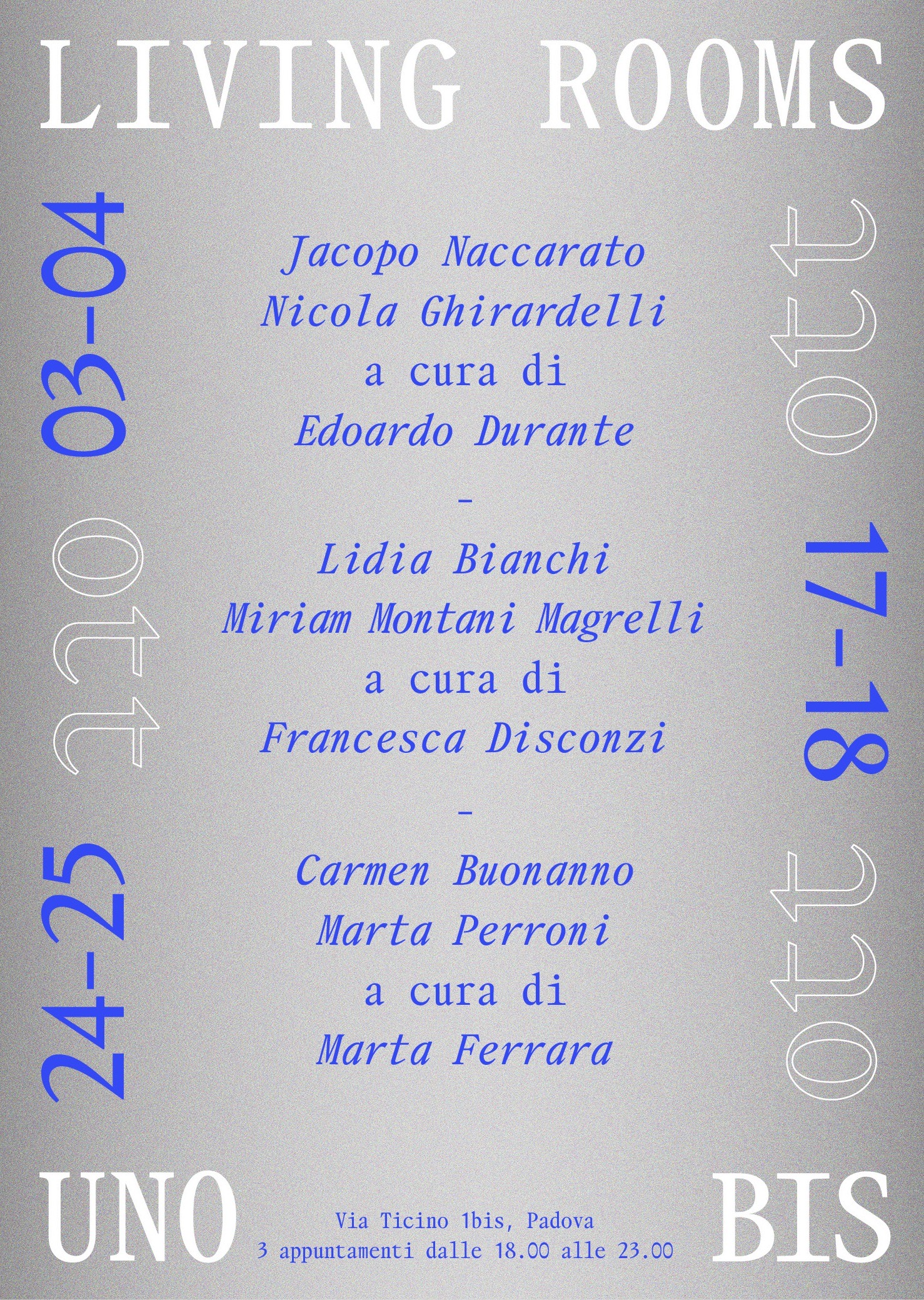 A ottobre torna la terza edizione di Living Rooms, rassegna di mostre brevi che propone tre bipersonali, con modalità di fruizione sperimentali e focus sulle pratiche artistiche e curatoriali contemporanee.