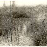 I silenzi rappresentati escludono l’uomo e la sua tecnologia, ma nella parte più matura della sua produzione in mostra il tempo cancella segni e oggetti di presenza umana e la vegetazione si protende per riappropriarsi del tutto. In «Dintorni di Nieuw Markt» non solo la vegetazione cresce tra i raggi della bicicletta, ma la stessa immagine è consunta ed erosa come un’antica pergamena, quasi a significare che non solo la realtà, ma anche la sua immagine fugge con il tempo.