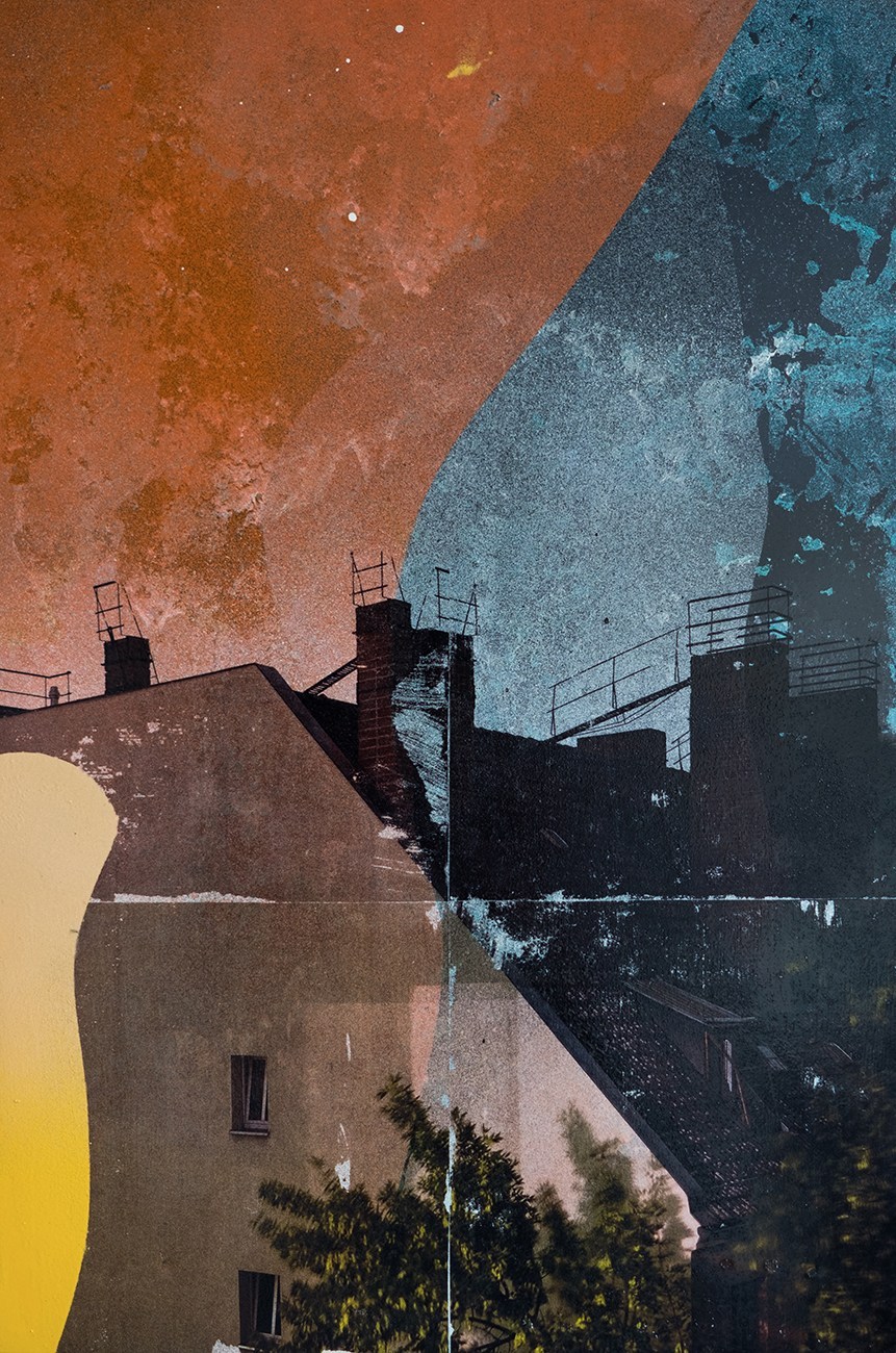 La città in cui lavora ha sicuramente influenzato i suo progetti che si concentrano su scenari urbani e paesaggi industriali che stimolano la realizzazione delle sue opere mischiando elementi pittorici e fotografici.