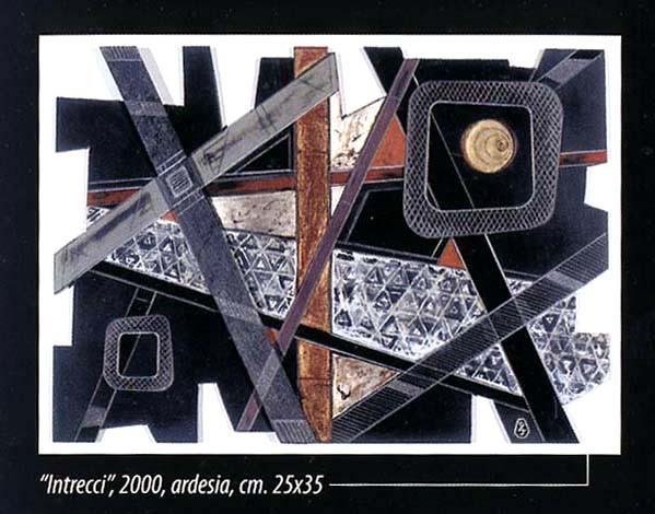 Nella fase successiva e più recente - esposta attualmente alla Cartesius - lo scultore si sgancia dalla figurazione e introduce nelle proprie opere, come un coup de théâtre, il nobile materiale dell’ardesia o lavagna che dir si voglia. Che incide con grande rigore e convinzione, con finezza e personalità, trovando nella giusta misura compositiva e in un contrappunto decorativo calibrato e al contempo vivace quella sorta di misura istintiva e felice, che lo rende maestro nell’arte dello sbalzo, del decoro e della scultura, nel bassorilievo e nell’altorilievo geometrico e astratto. Particolarmente convincenti ed eleganti appaiono i trafori, i graffiti e le sobrie coloriture sull’ardesia e le applicazioni di foglia d’oro e d’argento, che impreziosiscono l’essenziale bellezza delle suoi lavori, i quali vantano anche un notevole curriculum espositivo a livello nazionale.