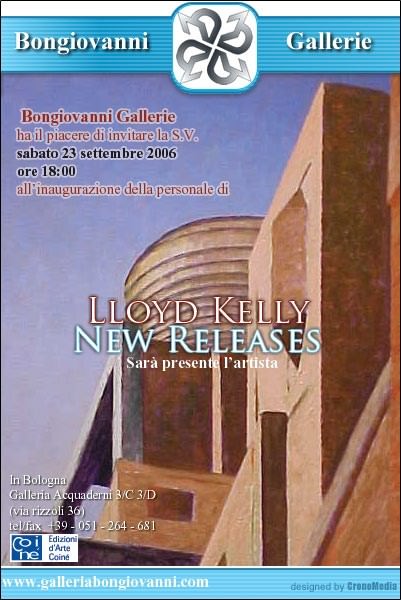 Sabato 23 Settembre 2006 alle ore 18.00 verrà inaugurata a Bologna nella sede della Galleria Bongiovanni , Gall. Acquaderni 3c/3d , Via Rizzoli 36 , la personale di Lloyd Kelly, artista americano affermato, apprezzato, con presenze museali negli Usa, Russia e Giappone, già attivo dagli anni ’70.