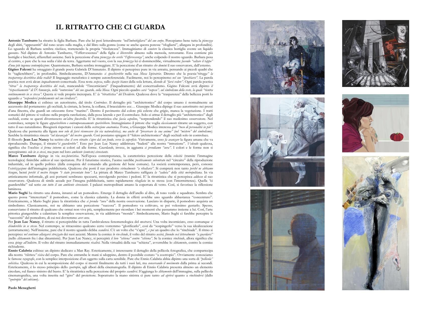 6° Senso Art Gallery is pleased to invite you to the Opening "The look through the portrait " the group exhibition of artists: Antonio Tamburro, Gigino Falconi, Ennio Calabria, Giuseppe Modica, Marco Tamburro, Mario Sughi.
