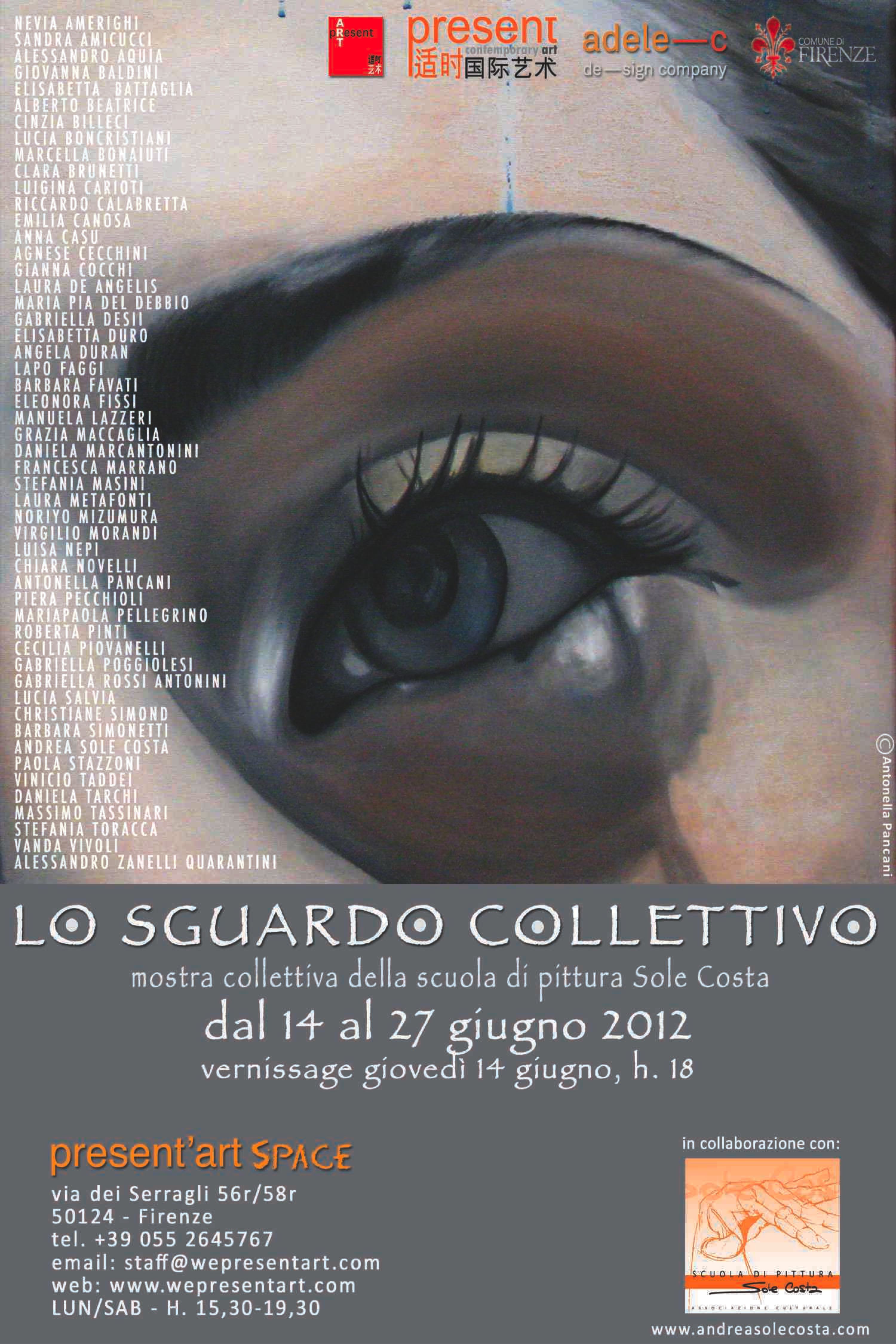 Si inaugura giovedì 14 giugno 2012 alle ore 18 – presso il Present Art Space di Firenze (via dei Serragli 56r/58r) – la mostra collettiva degli allievi della Scuola di Pittura Sole Costa, dal titolo "Lo Sguardo collettivo".