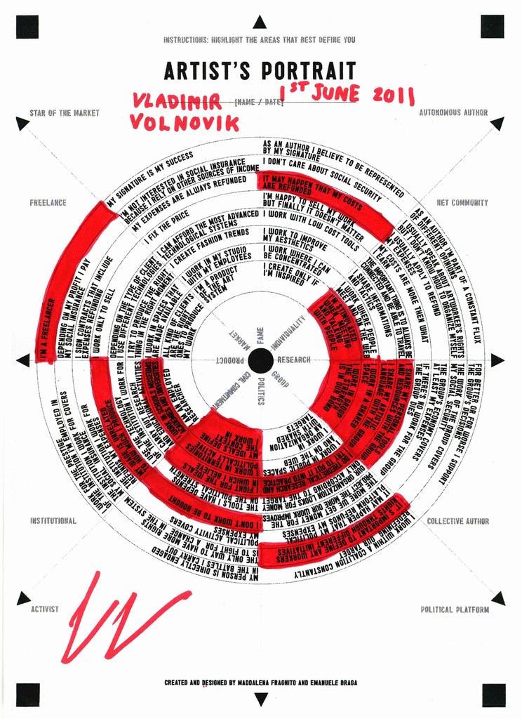 Ritratto d'artista consiste in una serie di diagrammi compilati da artisti che ne riflettono l'identità e