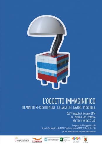 Ri-Costruzione, la casa del lavoro possibile, è un progetto del Dipartimento di Salute Mentale dell’Azienda Socio Sanitaria Territoriale di Lodi in collaborazione con la Cooperativa Sociale Il Mosaico Servizi di Lodi. L’obbiettivo della mostra è di festeggiare i primi dieci anni del progetto e soprattutto far conoscere il lavoro dei nostri ragazzi attraverso tutti gli oggetti realizzati, che sono anche stati esposti al Salone del Mobile di Milano 2016, nella sezione del Salone Satellite