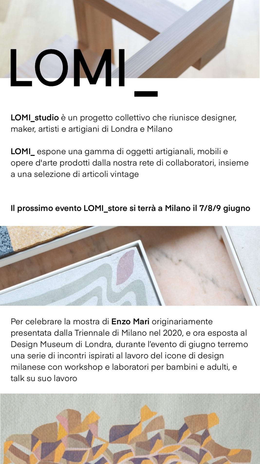 LOMI_studio è un progetto collettivo che riunisce designer, maker, artisti e artigiani di Londra e Milano