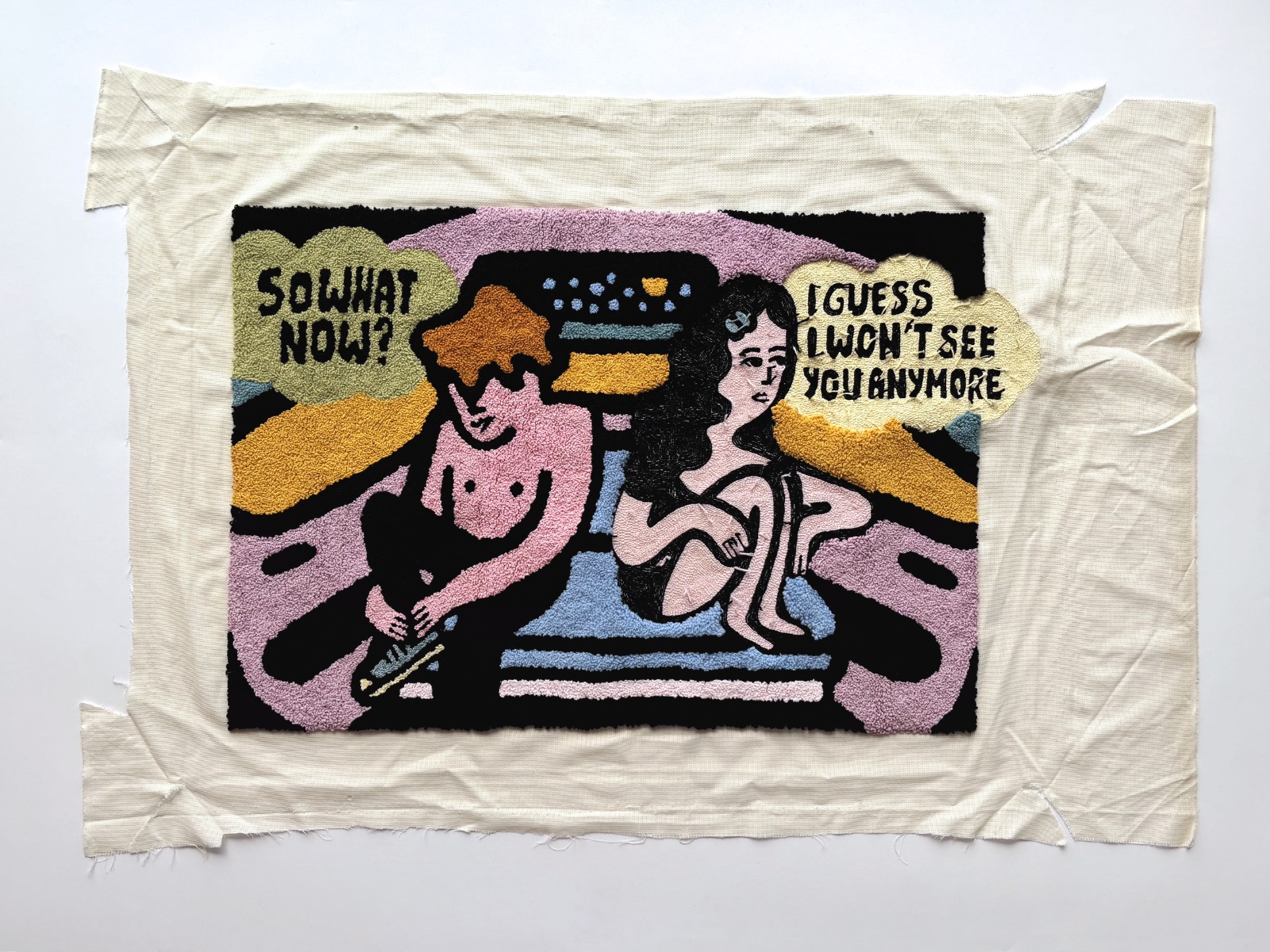 Armadilly (Camilla Cesarini, 1995) è un’artista tessile italiana che combina l’estetica pop con la tecnica dell’arazzo. Il suo lavoro si distingue per l’uso di colori accesi e forme stilizzate che attingono all’immaginario digitale. Ha esposto in numerose mostre nazionali e internazionali, ottenendo riconoscimenti per la sua capacità di tradurre temi contemporanei in un linguaggio visivo immediato e ironico.