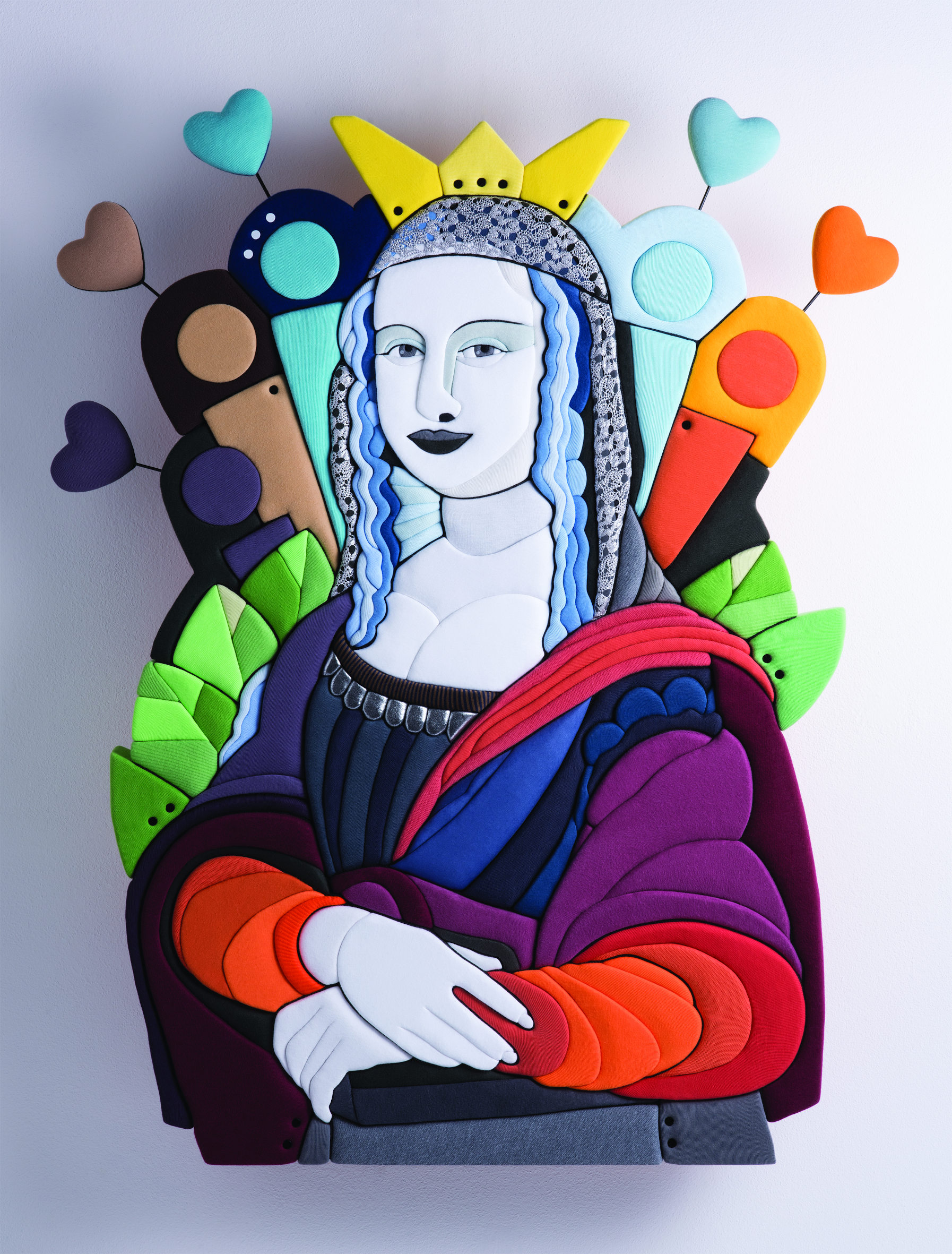 Nel nucleo di opere realizzate per l’occasione si ricordano le letture in chiave pop di Gianni Cella, quale la Batwoman in terracotta policroma, e di Stefano Bressani, come la scultura abbigliata con tessuti molto colorati, da cui deriva l’appellativo “scultura vestita”; il lavoro di Gian Marco Montesano dedicato allo storico furto della Gioconda del 1911 e l’acrilico su tavola di Virgilio Rospigliosi, artista concettuale che crea un corto circuito tra lo spazio interno ed esterno del quadro.