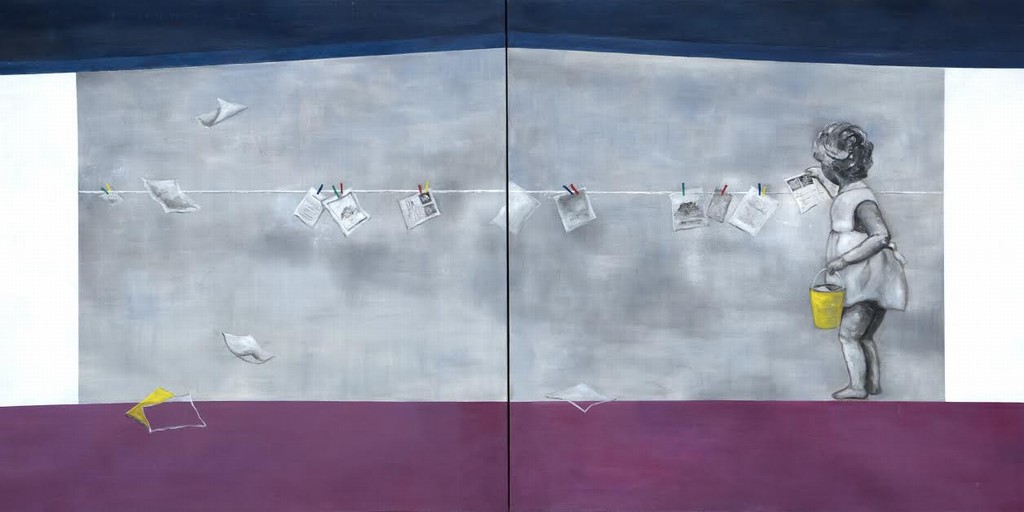 Le nuove opere di Loredana Albanese sono un vero e proprio inno alla leggerezza…aeroplanini di carta, foglietti, farfalle, oggetti sospesi magicamente nell’aria, una felice intuizione che dona un senso di pacatezza, di leggiadri … fili che sostengono fanciulli nel vuoto con una naturale delicatezza rassicurante.
