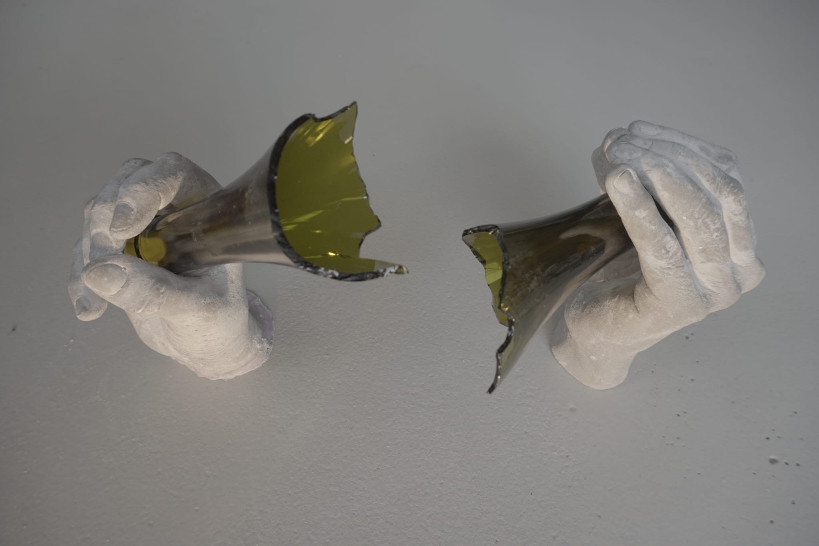 Negli spazi di Villa Rospigliosi l’artista costruisce un percorso attraverso una molteplicità di materiali e linguaggi, dal video alla performance, dalla scultura all’installazione. L’azione distruttrice rimane come testimonianza nei materiali che l’artista adotta: colli di bottiglia, scarpe chiodate, piastrelle di cemento sconnesse. La violenza suggerita da ciascuno di questi elementi viene messa in dialogo con la parola Vittoria, da anni al centro delle sue ricerche. «Victory è una parola che ho utilizzato dal 2016, quando vidi un’immagine in televisione che mi toccò molto. Un jiahdista era in piedi su un pezzo di colonna di un tempio a Palmira, distrutto dalle bombe, felicemente sfoggiava un sorriso, il braccio alzato e le dita in segno di vittoria. Il marmo è stato il primo materiale con il quale ho realizzato il mio primo Victory, poi negli anni declinato in diversi progetti. Purtroppo, la storia non ha mai contraddetto questa mia banale provocazione». La rovina e la distruzione sono il punto di partenza per la creazione, per rielaborare ciò che la violenza e lo scontro lasciano: un paesaggio devastato e precario. Non interessano più i martiri, né gli eroi ma i testimoni, coloro che rimangono, chiamati a reagire, a immaginare nuove forme dai resti di ciò che era.