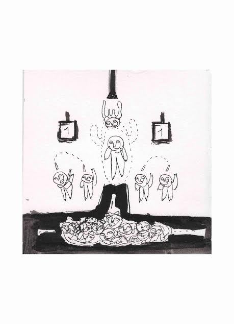 omini creati su carta dalla linea continua di un pennino a china e di un pennarello. Nelle opere esposte questi