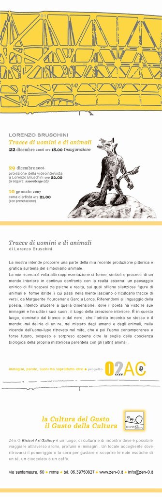 La mostra intende proporre una parte della mia recente produzione pittorica e grafica sul tema del simbolismo animale