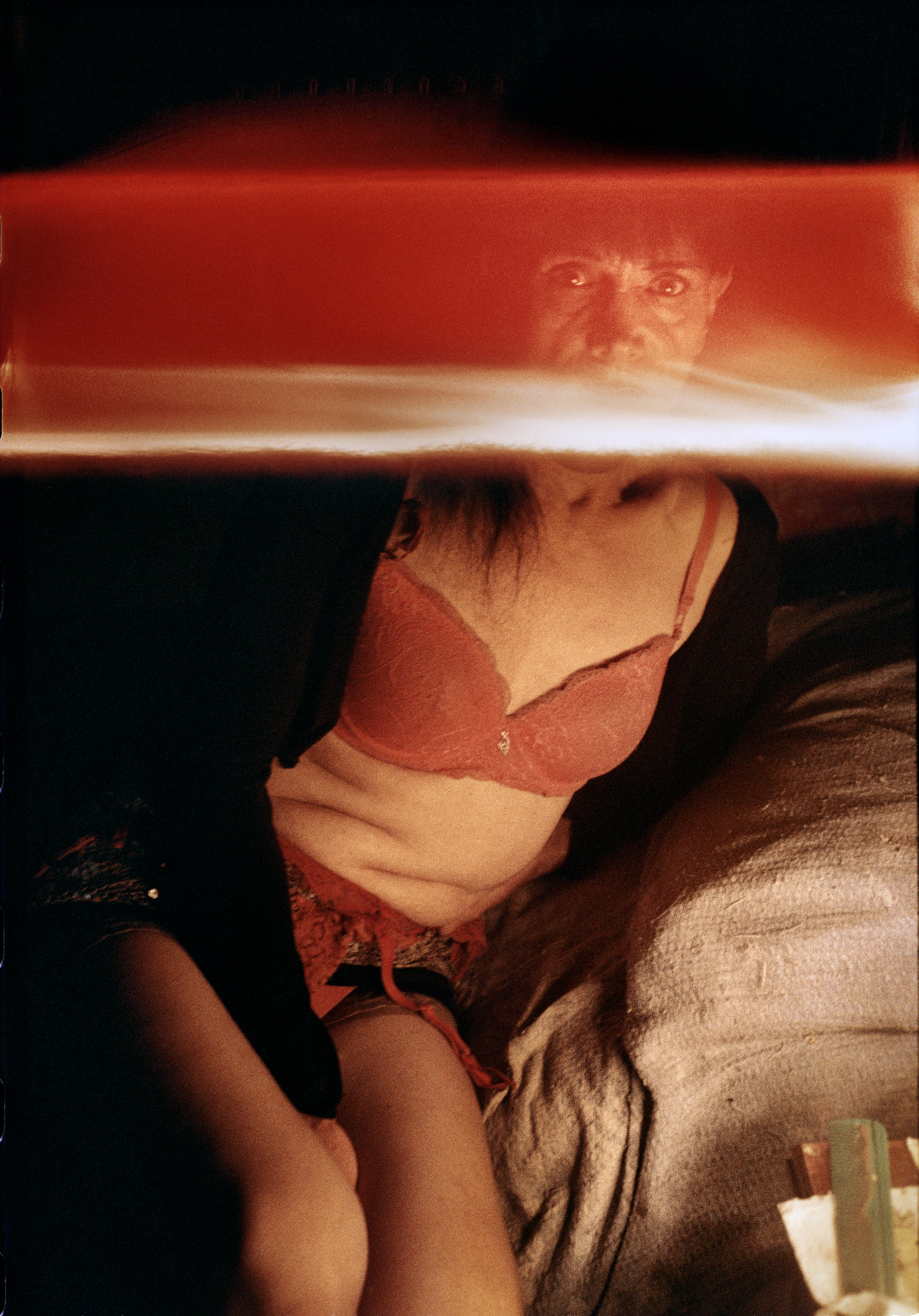 La struttura di questo libro segue inevitabilmente un’esperienza vissuta e condivisa che ha il ritmo di una giornata compressa, che si ripete sempre uguale. […] Io quando sono a Catania passo le mie giornate con loro a tempo pieno, a volte accompagnando Marcello e Antonio lungo il tragitto da casa fino a San Berillo e poi rimanendo nel quartiere fino a che ci rimangono loro. Cerco di essere invisibile perché la mia presenza potrebbe inibire i clienti e disturbare le ragazze che hanno bisogno di lavorare, così mi muovo da una stanza all’altra – ripetendo più volte il giro – cercando di riempire i loro momenti vuoti. Le fotografie sono degli intervalli che scandiscono questo ripetitivo tran tran quotidiano e le nostre sessioni non sono mai troppo lunghe perché le ragazze sono volubili e imprevedibili e se mi si concedono è perché ne hanno davvero voglia. Così ci siamo fatti compagnia e abbiamo imparato a conoscerci nel corso del tempo […]”