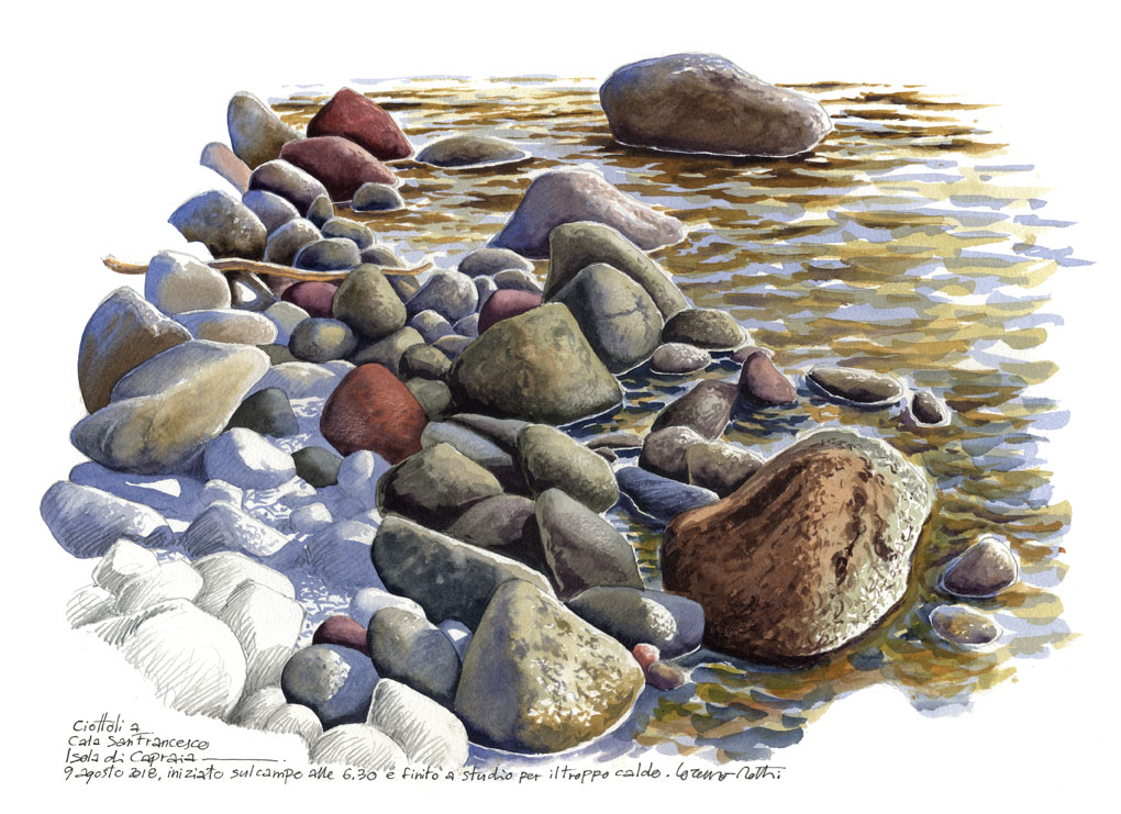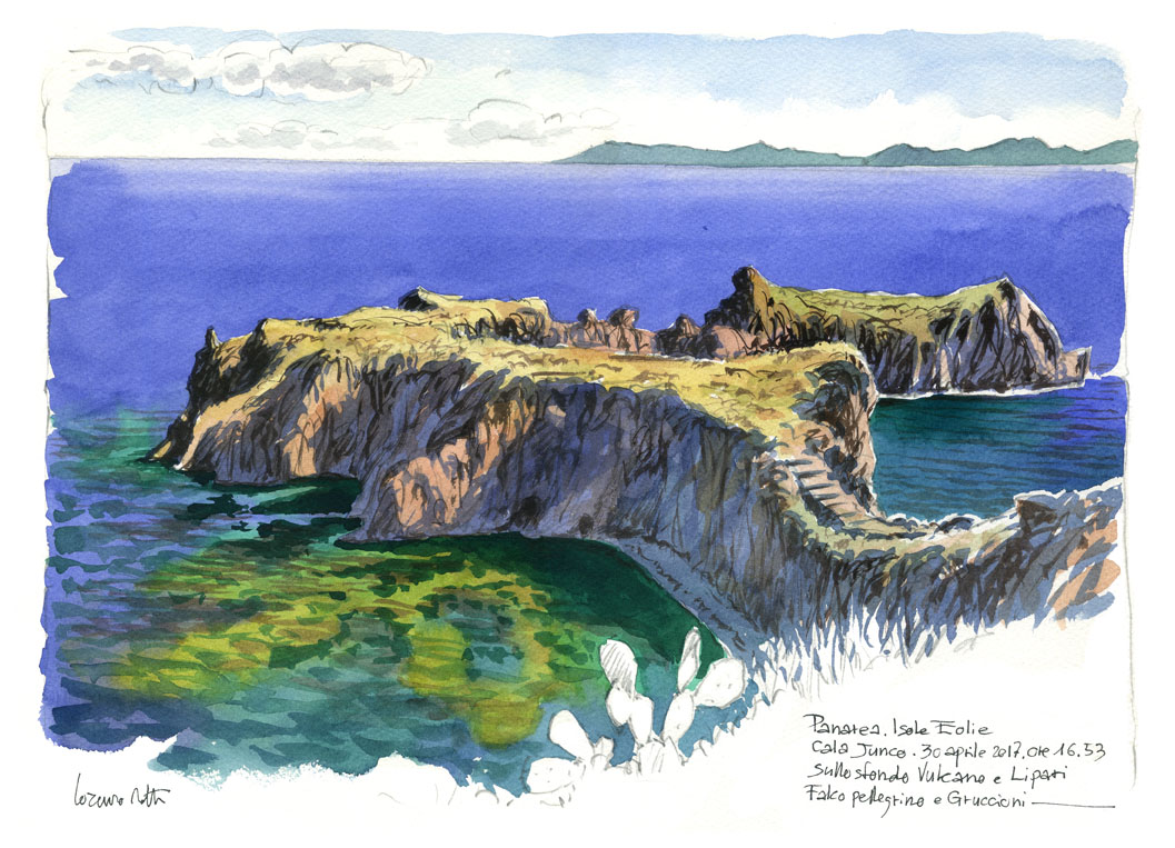 Dai ripetuti soggiorni nelle isole dell’arcipelago toscano al progetto in corso di realizzazione dedicato alle Eolie, di cui la mostra alla Fondazione Peano presenta nel manifesto una pagina dedicata a Filicudi. Il filo della narrazione, inedito, è pensato per un viaggio che nasce da una documentazione proveniente dallo studio delle vedute eoliane realizzate da un grande esploratore ottocentesco del Mediterraneo, il principe antropologo Luigi Salvatore d’Asburgo.