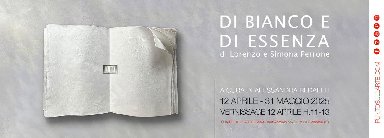 La famosa coppia di artisti milanesi Lorenzo e Simona Perrone presentano DI BIANCO E DI ESSENZA, la loro prima mostra personale alla Galleria PUNTO SULL’ARTE di Varese. Gli artisti espongono sculture di grande impatto visivo ed emotivo, immergendo le sale della galleria varesina nel loro universo candido che vede come protagonista il libro. Il VERNISSAGE si terrà SABATO 12 APRILE dalle 11 alle 13 presso la sede principale di PUNTO SULL’ARTE in Viale Sant’Antonio 59/61 a Varese. Alessandra Redaelli, curatrice della mostra, e Lorenzo e Simona Perrone saranno presenti all’inaugurazione.