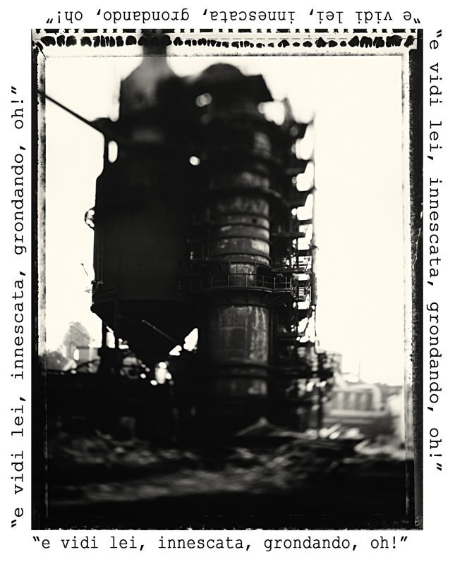 L’artista, ispirato dai versi del poeta genovese, racconta atmosfere post industriali fruibili in uno stato di sub coscienza prodotto dall’ascolto di suggestioni elettroniche, quasi sfiorando avanguardie neolinguistiche visuali.