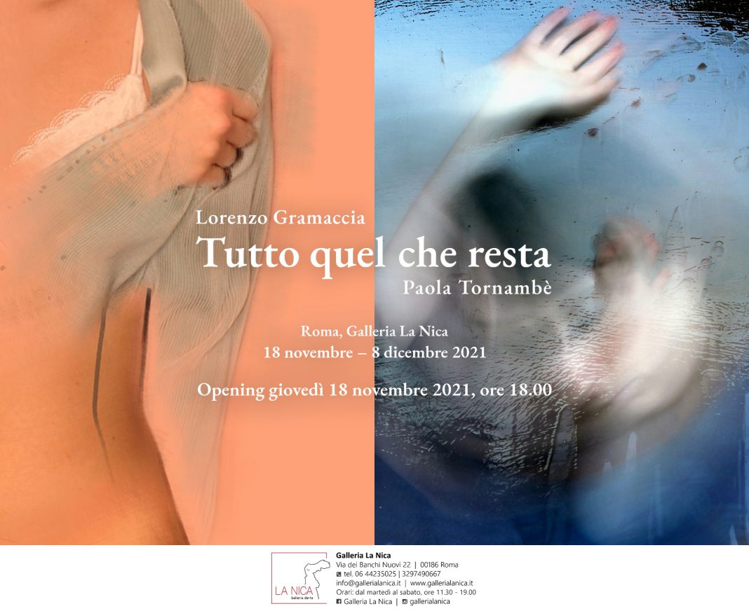 Giovedì 18 novembre 2021 alle ore 18.00 verrà inaugurata alla Galleria La Nica di Roma la mostra "Tutto quel che resta", bipersonale che metterà in dialogo le opere di Lorenzo Gramaccia e Paola Tornambè.
