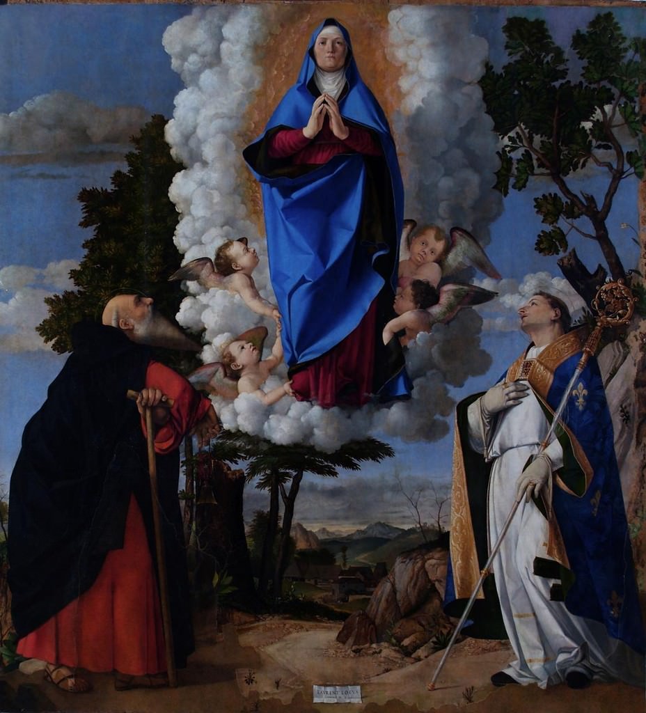Lorenzo Lotto – L’Apparizione della Vergine ai Santi Antonio abate e Ludovico da Tolosa
