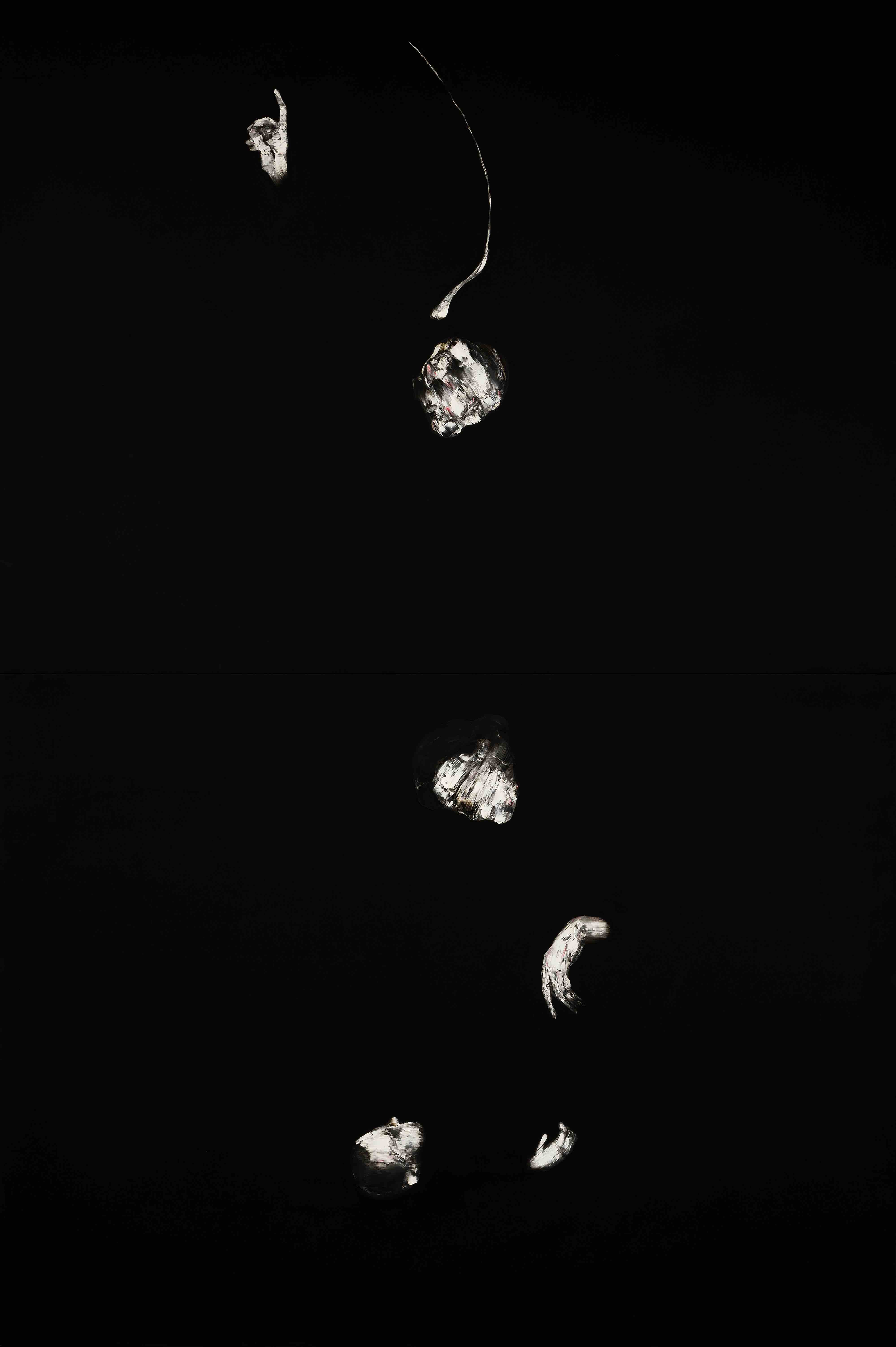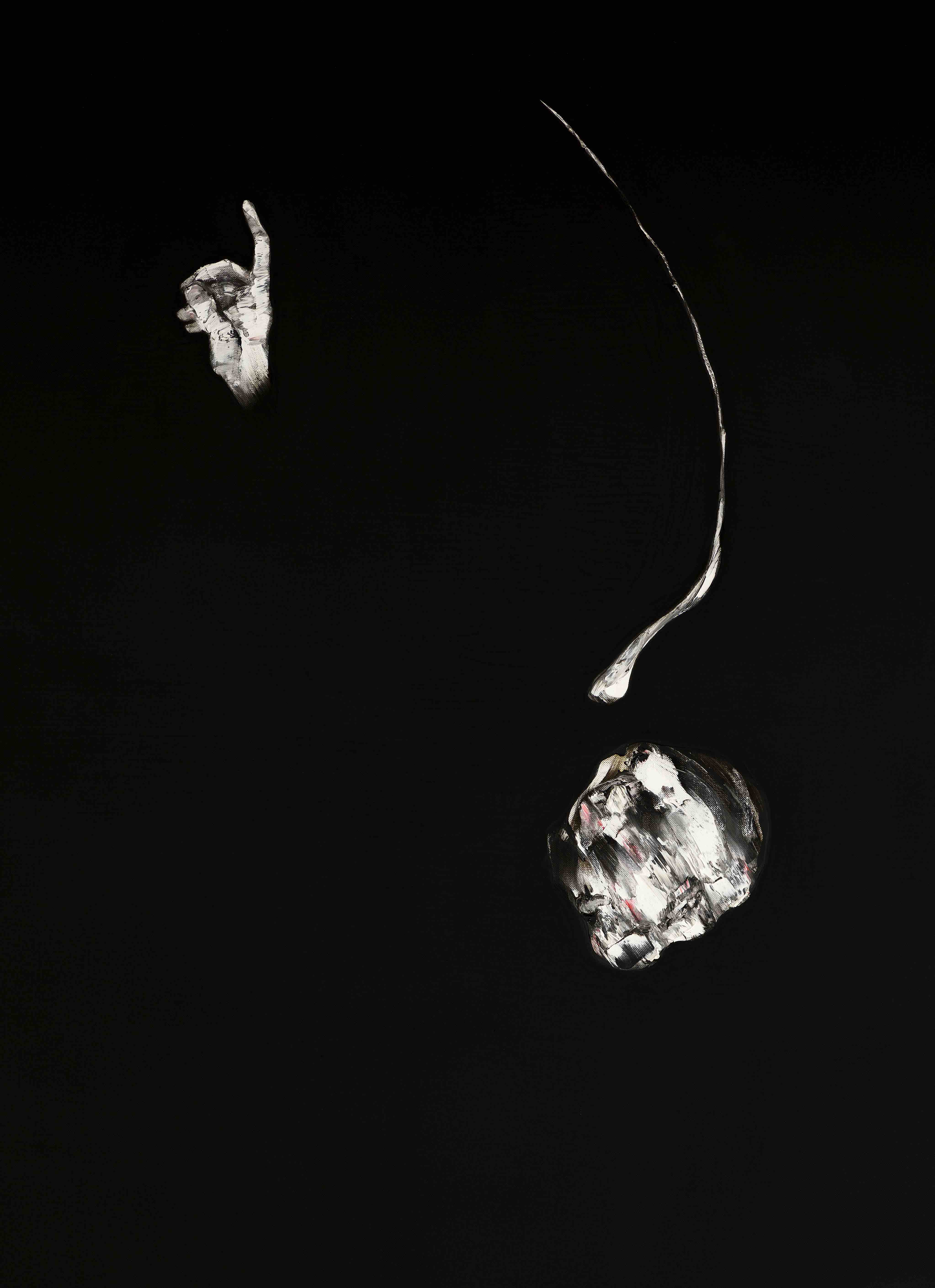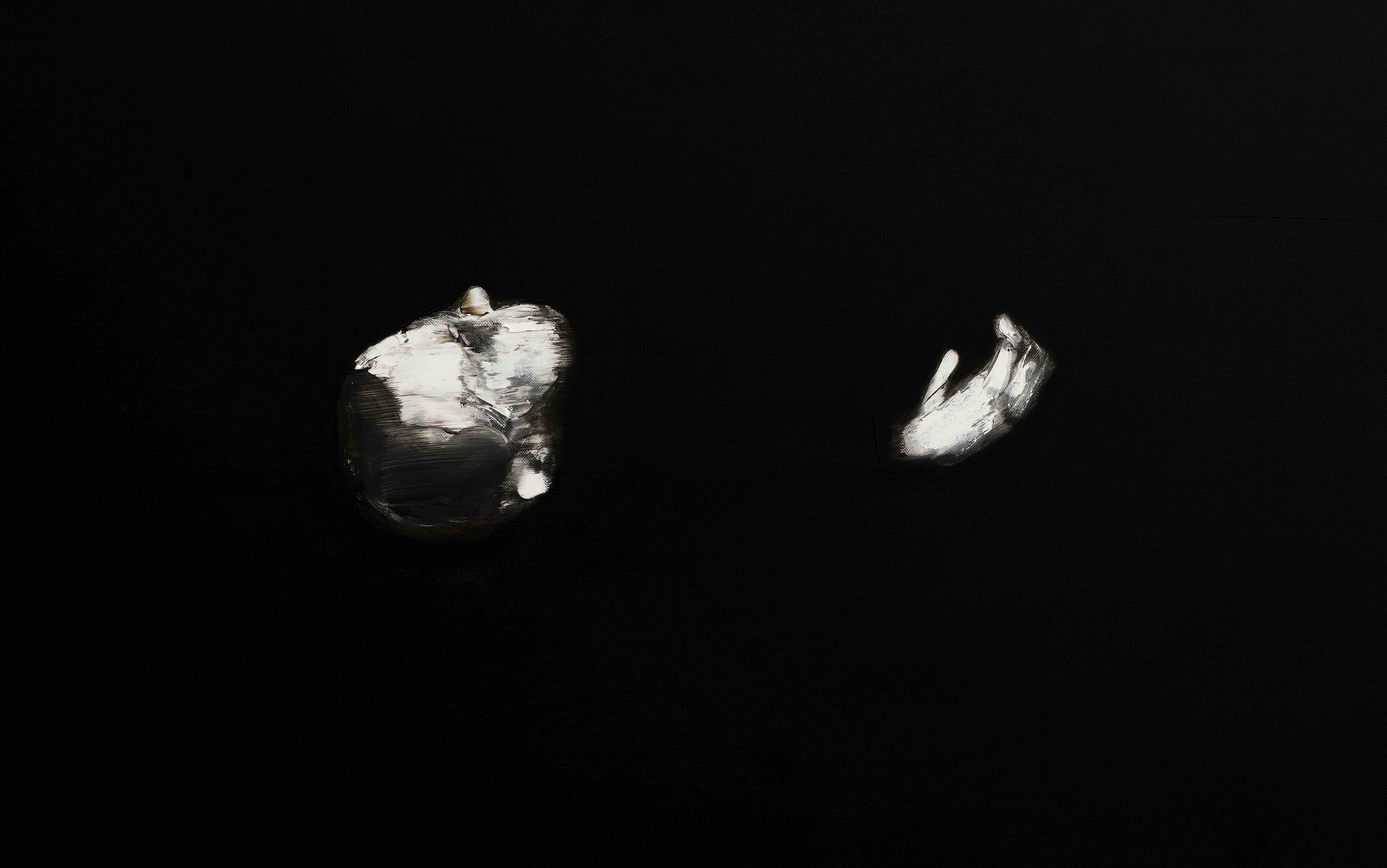Puglisi guarda infatti all’opera di Caravaggio attraverso il filtro della sua personale ricerca pittorica: l’utilizzo diffuso del nero crea uno sfondo di tenebra assoluta, da cui sprigionano fiotti di luce capaci di definire volumi, volti, parti del corpo realizzate con toni di bianchi cangianti screziati di rosso, come delle presenze catturate in un’espressione o in un gesto, in un percorso verso l’essenzialità della rappresentazione denso di rimandi alla storia della pittura.