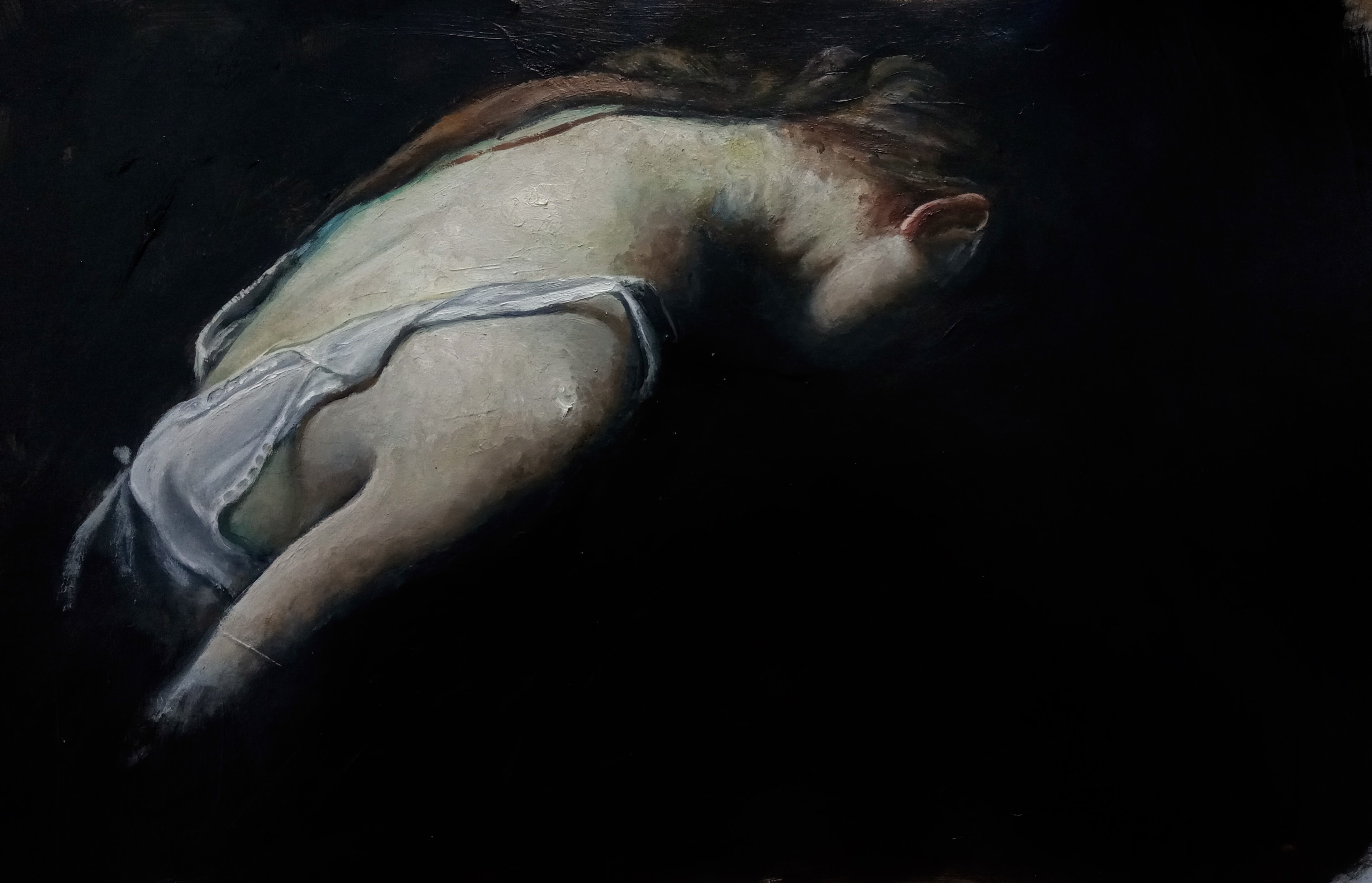 Squarciando tenebre che, al contrario, spesso gridano dall’inconscio, dai ricordi e dalla sofferenza, questi dipinti vanno oltre il simbolo e oltre l’emozione, che è cosa effimera, addentrandosi nelle profondità abissali del sentimento. Sono volti che risuonano di note silenziose, narrandosi senza parlare, perché tutto è negli sguardi, nelle forme, nel gesto cristallizzato e a volte incompiuto, quasi temesse di essere scoperto e interpretato.