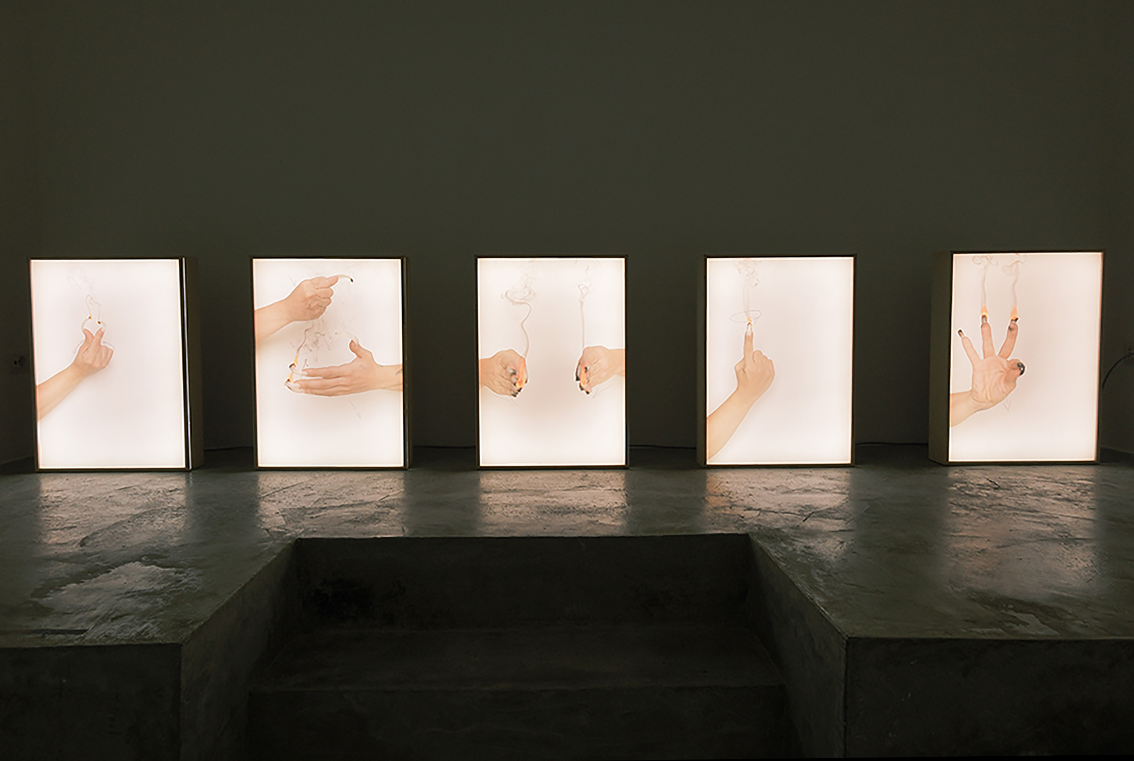 In quest’opera il riferimento è il pensiero critico rispetto a sistemi di mercato, alle politiche globali e l’immagine come fortemente manipolata e manipolatoria: in cinque light boxes le mani di un’interprete del linguaggio dei segni con le unghie in fiamme significano il titolo del libro del filosofo inglese Mark Fisher, Realismo capitalista, pubblicato nel 2009 e in seguito descritto dal filosofo Slavoj Žižek come “la miglior diagnosi della situazione in cui ci troviamo”. Pubblicato immediatamente dopo la crisi economica globale e il naufragio del pensiero neoliberista il saggio si poneva in contrasto con la filosofia thatcheriana del “there is no alternative” e in opposizione al sostegno del pensiero pro-mercato.
