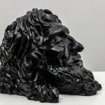 Nella sala successiva incontriamo altre sedute, Masters e Mezzadro che nella pratica di Consani si fanno nuovamente “piedistallo” per due sculture. Masters disegnata da Philippe Starck & Eugeni Quitllet, rappresenta un tributo a tre delle sedie più iconiche di sempre: la Serie 7 di Arne Jacobsen, la Tulip Armchair di Eero Saarinen e la Eiffel Chair di Charles Eames. I profili degli schienali di queste tre sedie sono sovrapposti e intrecciati per creare un ibrido con l’intenzione che, anche Masters, diventi un emblema nel campo del design. Sopra questa sedia insiste una testa in cemento, di dimensioni considerevoli.