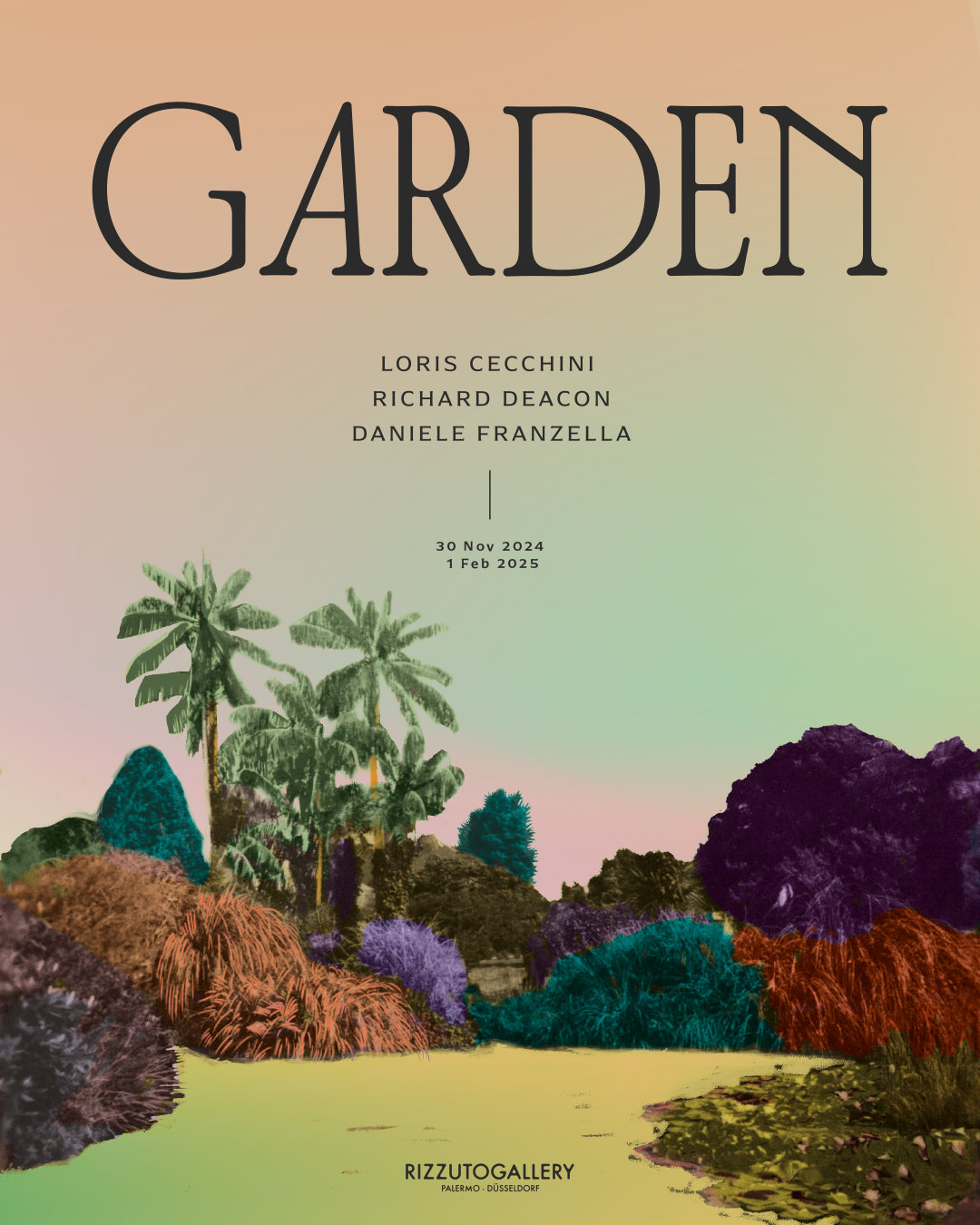 RizzutoGallery è orgogliosa di presentare GARDEN, mostra tripersonale degli artisti Loris Cecchini, Richard Deacon e Daniele Franzella. La mostra - realizzata con il contributo culturale di Daniela Bigi, della Fondazione Radicepura e del collettivo Ground Action, e con il Patrocinio dell’Accademia di Belle Arti di Palermo - sarà inaugurata sabato 30 novembre 2024 alle ore 18.00 e resterà visitabile fino al 1° febbraio 2025, dal martedì al sabato dalle ore 16.00 alle 20.00.
