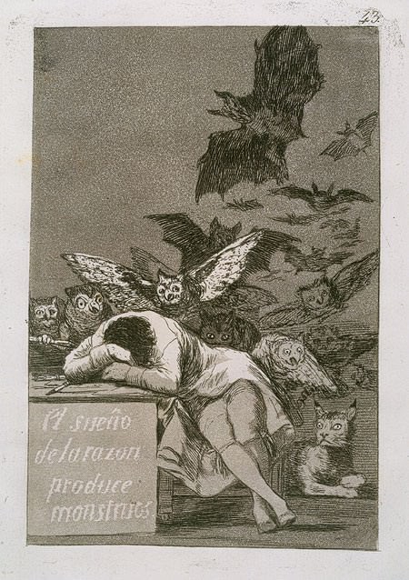 L’alta qualità di questi artisti, nati tutti agli inizi dei ’70, si manifesta nei Caprichos in mostra, interessanti sotto diversi aspetti. Dal punto di vista tecnico, poiché ognuno mette in evidenza una manualità oggi riscoperta con stile elegante, impeccabile e calibrato nel dosare decorativismi strumentali; dal punto di vista artistico, in quanto rompono con la tendenza dilagante al provocante e spettacolare, tramite un linguaggio anticonformista, per niente istantaneo, poiché esprime con ragione i turbamenti dell’inconscio, seducendo senza ricorrere a schemi esemplificativi o, peggio, cedere alla retorica; dal punto di vista storico-culturale, dato che illustrano il loro tempo trasfigurandolo secondo precisi canoni personali e con inclinazioni postromantiche. Così, simboli e mostri acquistano la folgorante e concreta evidenza della realtà. Al fondo, loro prima ispiratrice.