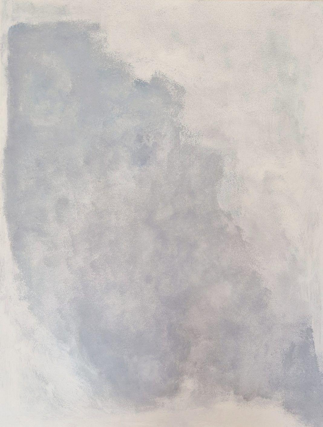 L’artista elabora una pittura data da larghe campiture di colori tenui e segni luminosi.