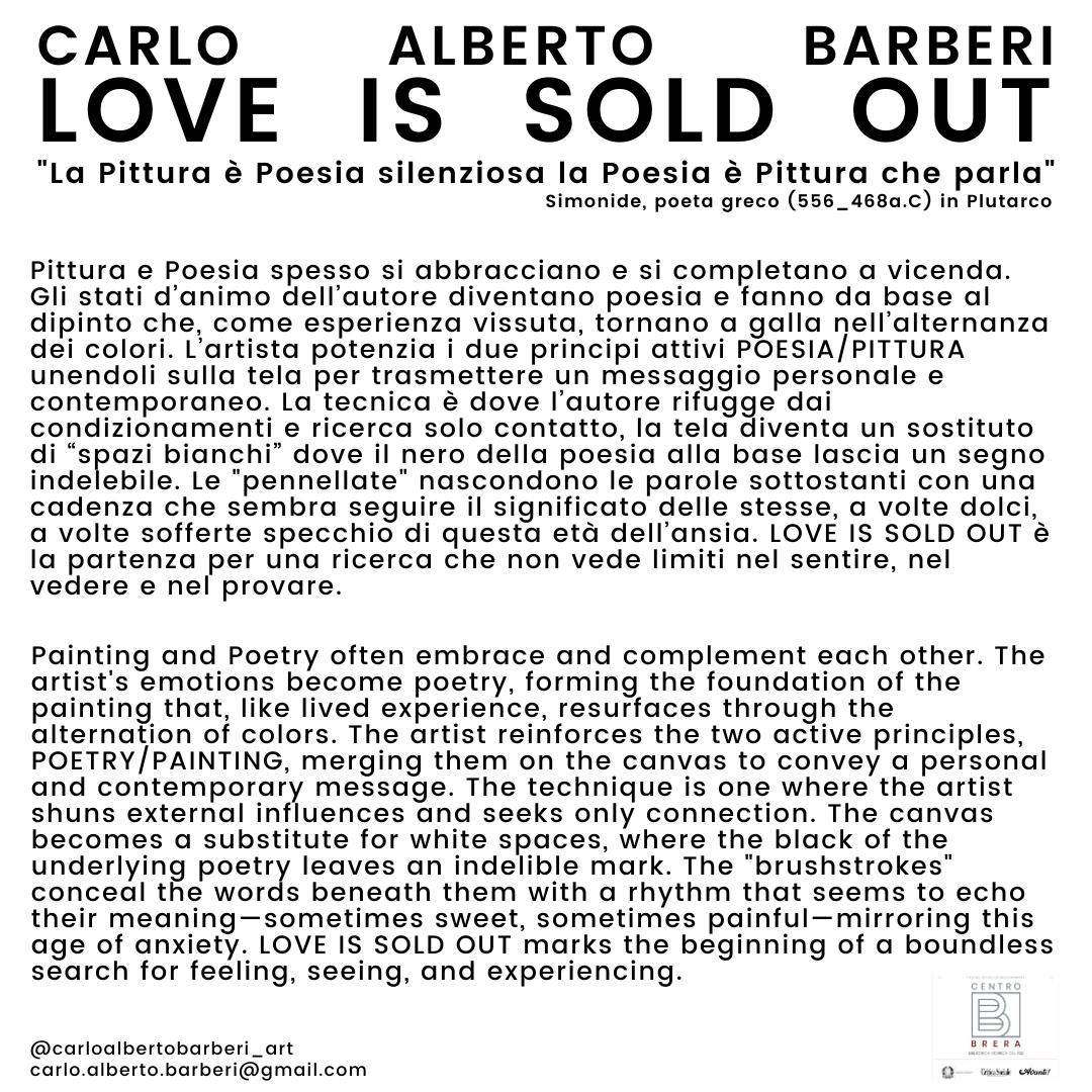 Alberto Barberi dal titolo LOVE IS SOLD OUT. L’artista milanese, dopo un lungo periodo di attività a