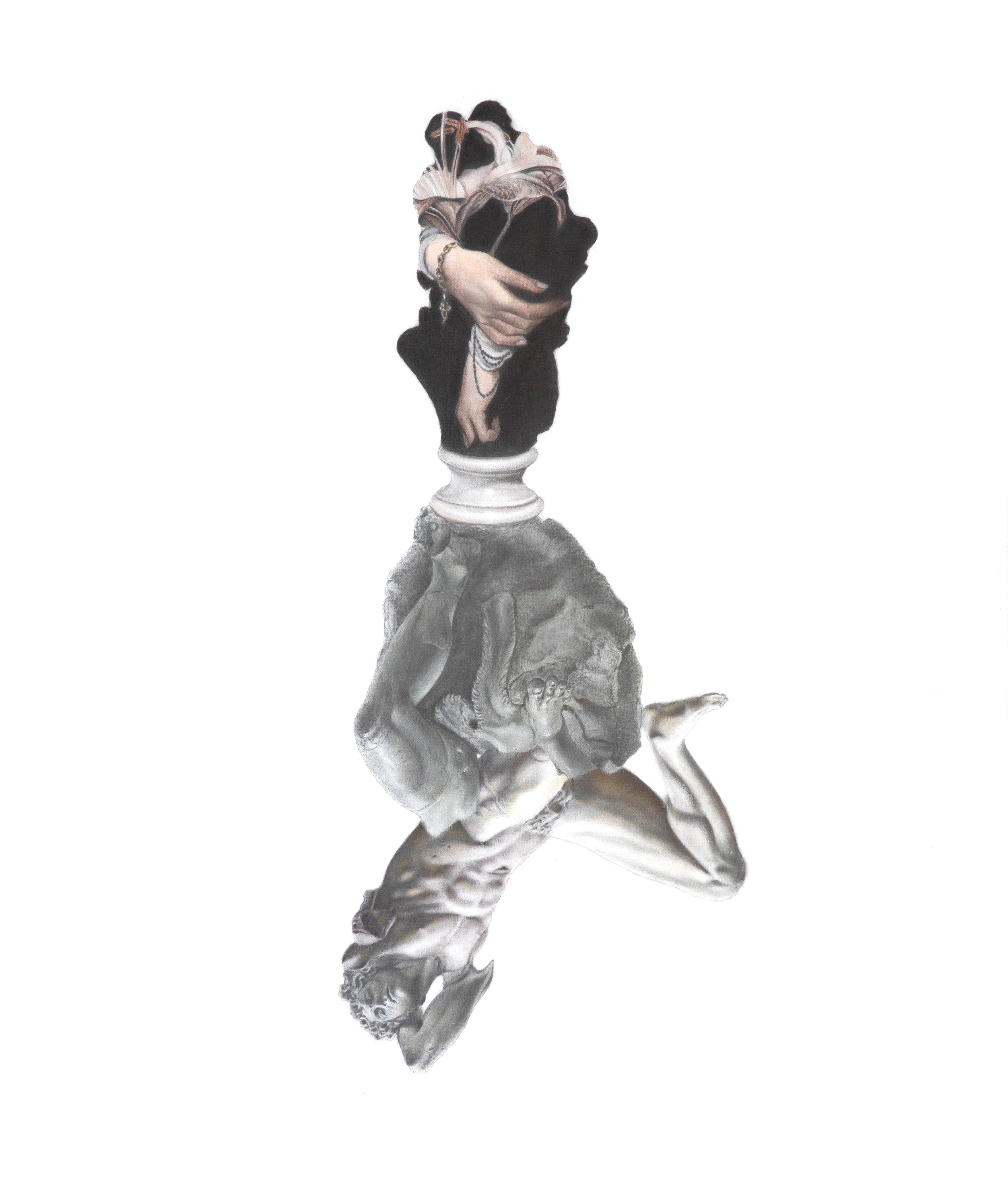Il percorso espositivo si articola intorno ad una riflessione pittorica sul gioco, sul mito e sulla religione attraverso una figurazione destrutturata ed anamorfica. . Dice a riguardo l’artista : .