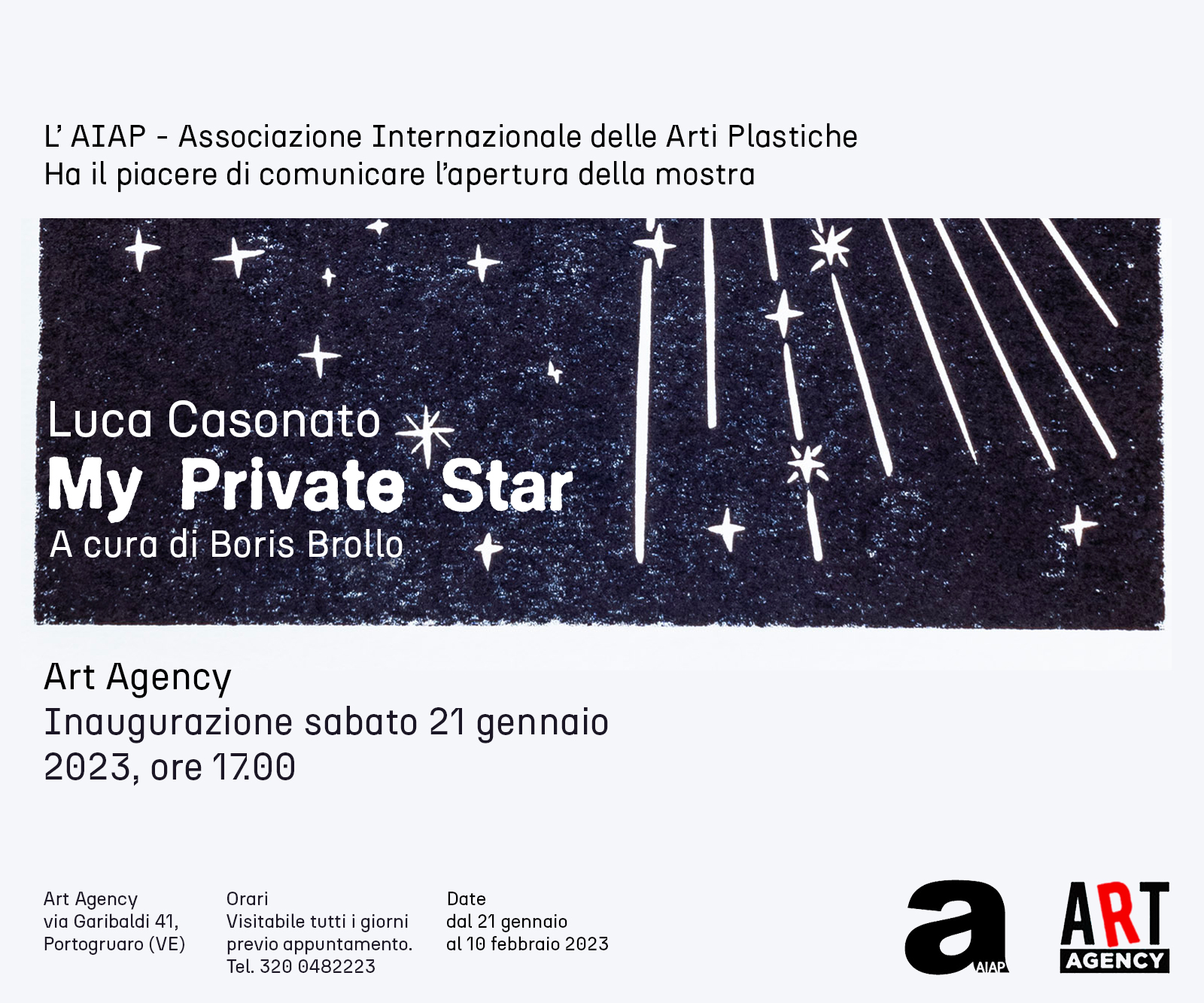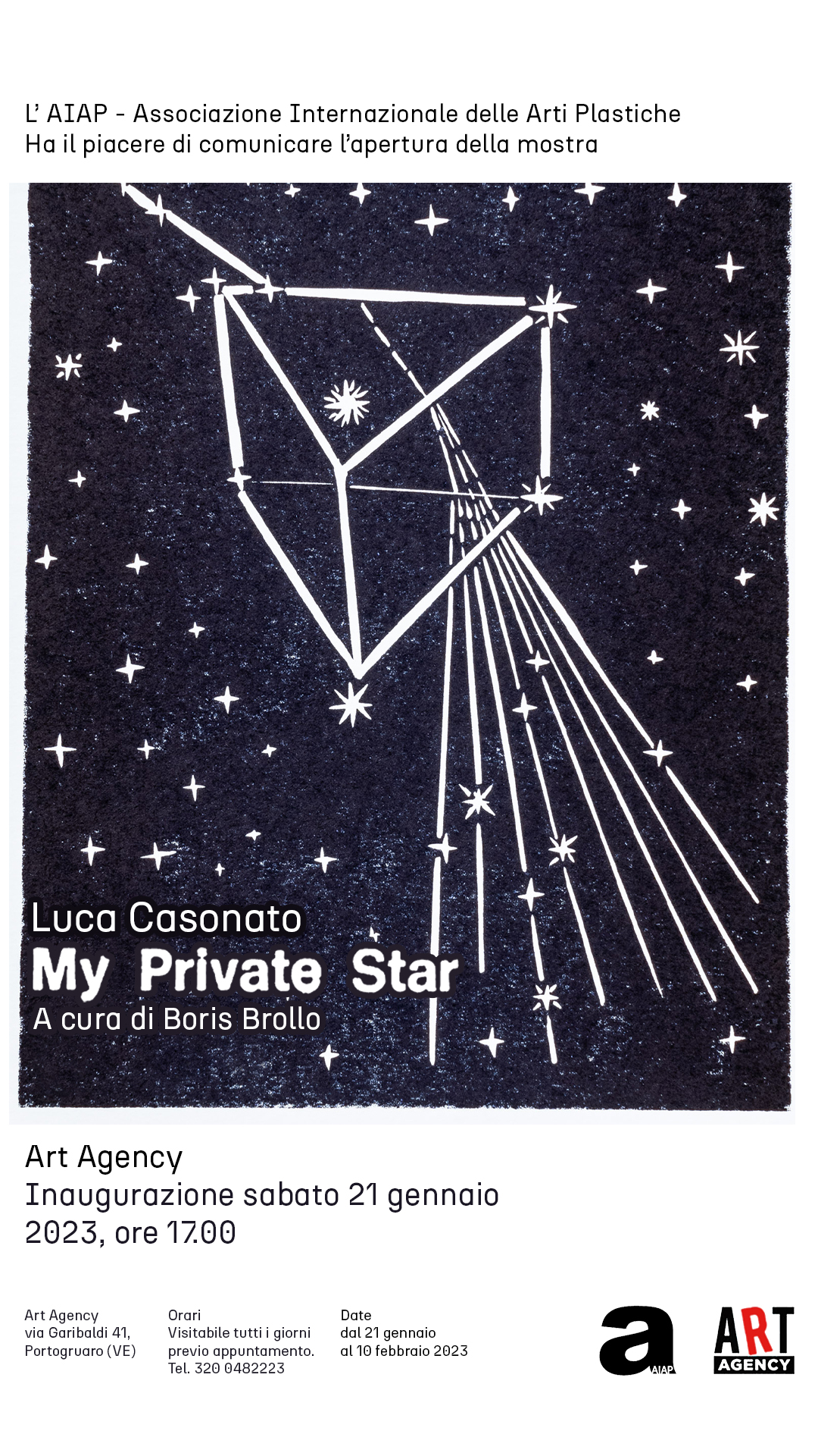 La mostra My Private Star, ospitata all’Art Agency di Portogruaro dal 21 gennaio al 10 febbraio 2023, si compone di 12 opere di piccole dimensioni (21,7x30cm).