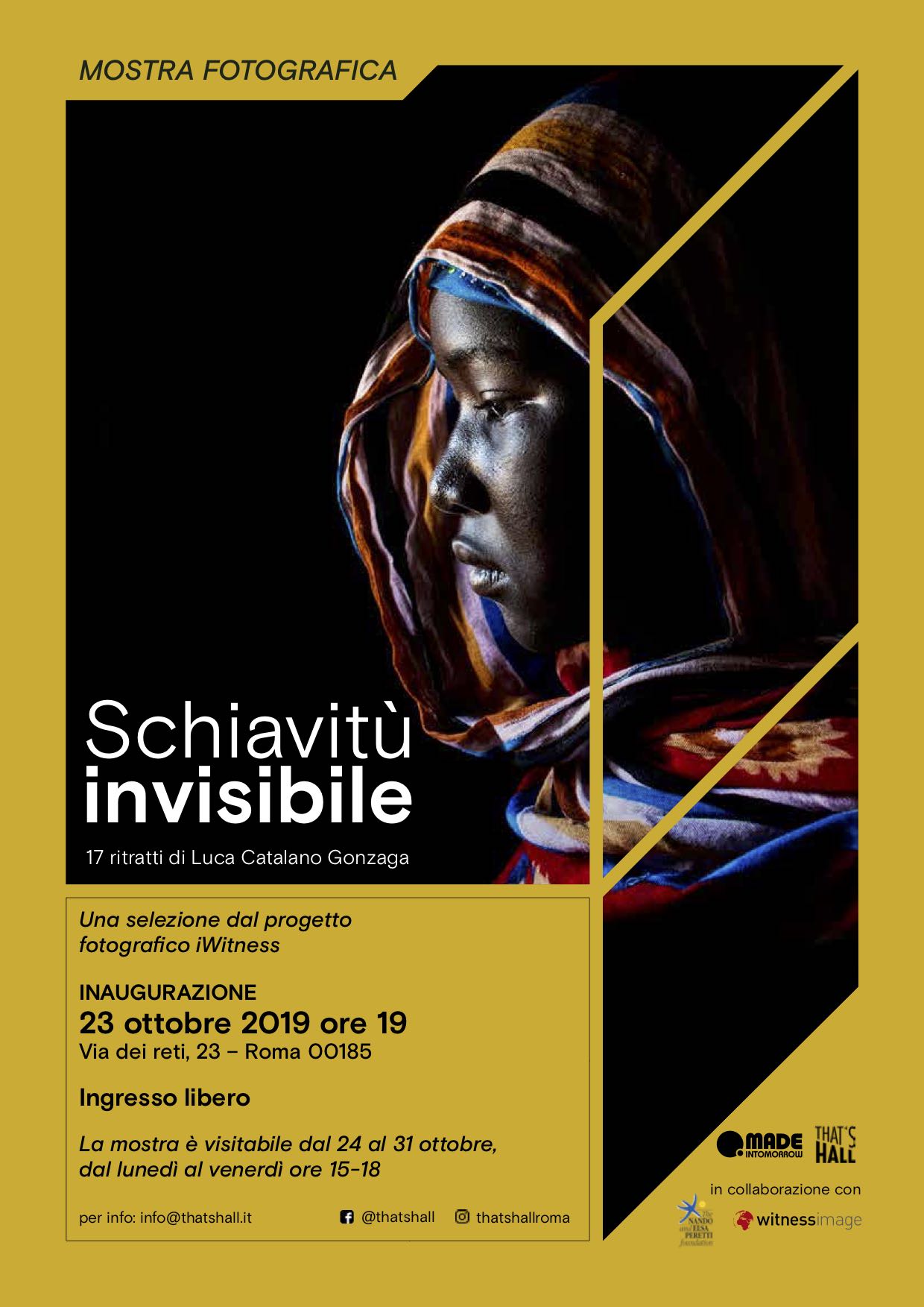 Inaugurazione mostra 23 ottobre ore 19 presso That’s Hall, via dei Reti 23, Roma (ingresso gratuito)