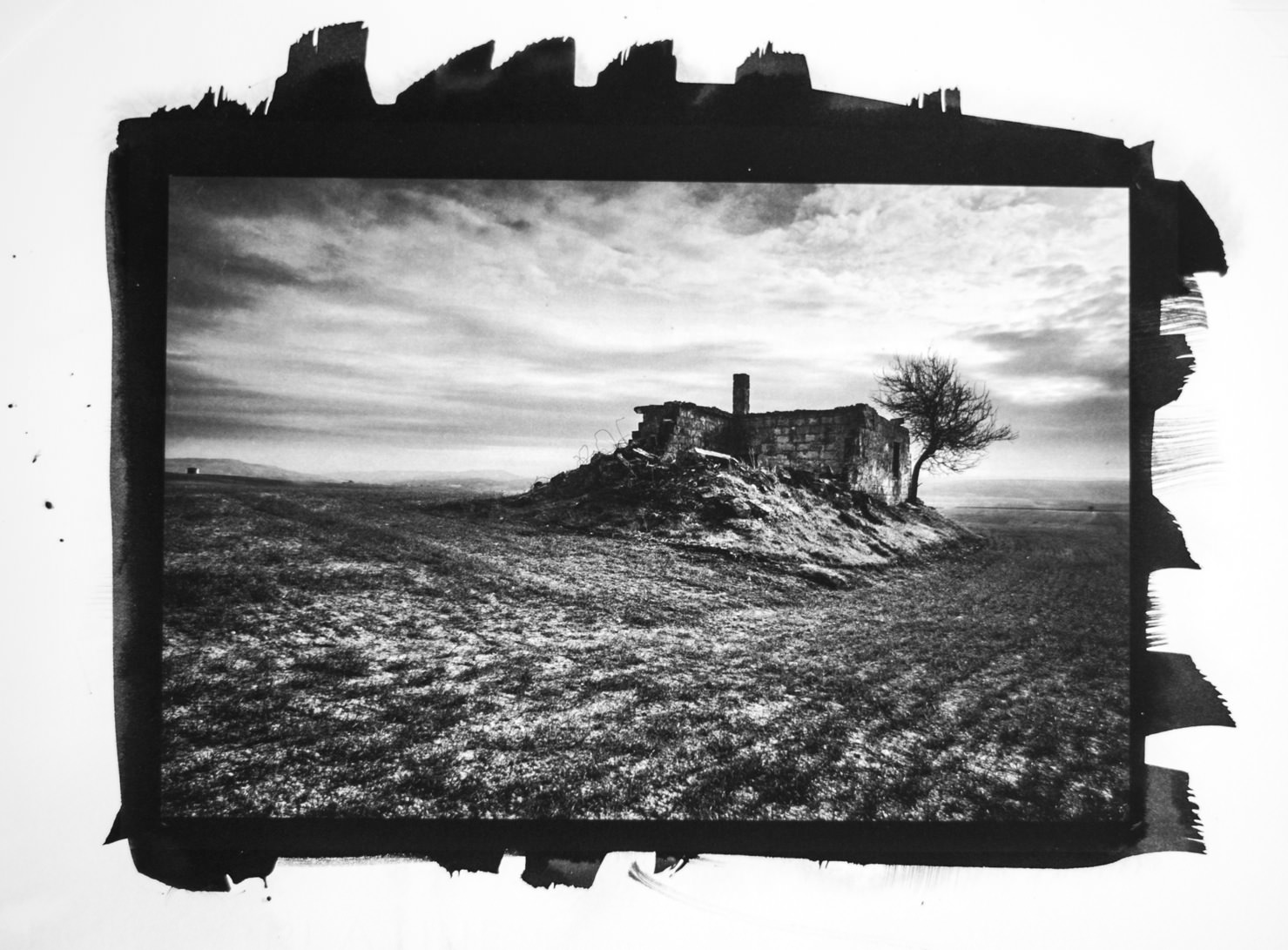 La tecnica di stampa utilizzata per questa serie di scatti è a “contatto” detta al platino palladio, considerata il punto di arrivo qualitativo nella stampa fotografica in bianco e nero. Questa tecnica offre diverse possibilità di controllo: la tinta dell'immagine varia a seconda del dosaggio dei sali metallici nell'emulsione fotosensibile e le stampe realizzate hanno una durata nel tempo, non solo superiore a quella delle stampe all'argento, ma paradossalmente anche a quella della carta su cui l'immagine è impressa. Le stampe vengono realizzate a contatto da negativo che deve avere quindi lo stesso formato della stampa. La tecnologia digitale oggi permette di ottenere negativi di grande formato di qualità eccellente. Con una soluzione di ossalato ferrico e potassio cloroplatinito si sensibilizza un foglio di carta che, a contatto di un negativo, viene esposto a una sorgente di luce ricca di raggi UV (la luce del sole ad esempio). Lo spettro UV riduce lo ione ferrico, producendo una debole immagine. Nel successivo sviluppo il sale ferroso riduce a sua volta il sale di platino, costituendo l’immagine finale e lasciando intorno al perimetro dell’immagine le caratteristiche spennellate scure, visibili in alcune delle opere in mostra e che non rappresentano un vezzo artistico, bensì la traccia del prezioso procedimento di stampa.