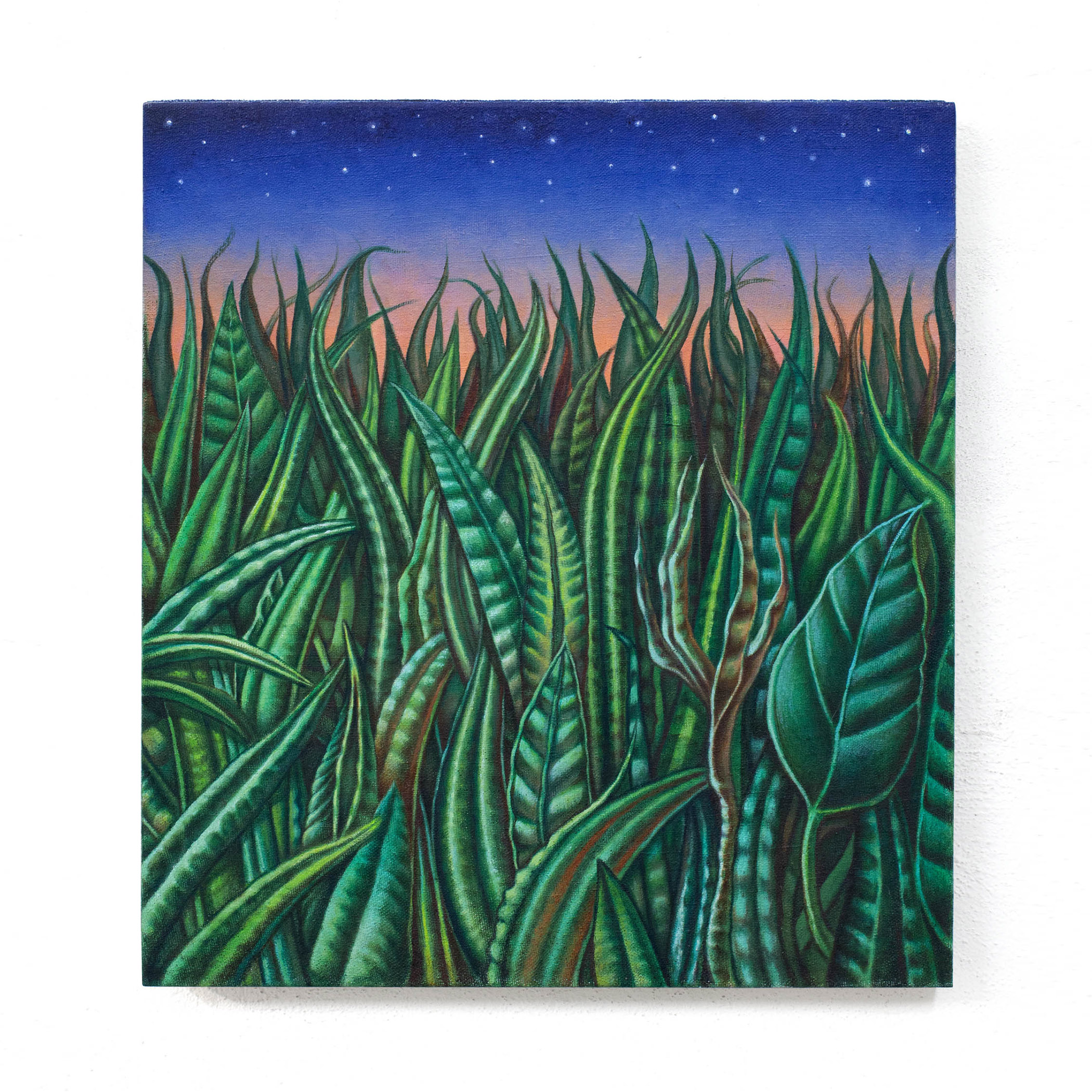 vegetali svettano verso un cielo notturno e terso, illuminato dalla luce lunare.