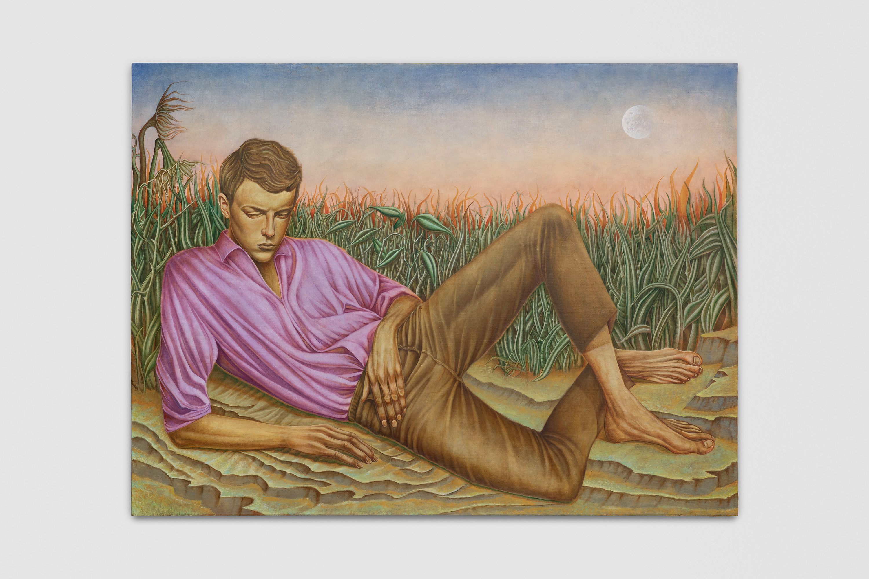 La pittura di Luca De Angelis si connota per una costante relazione tra figura e natura.