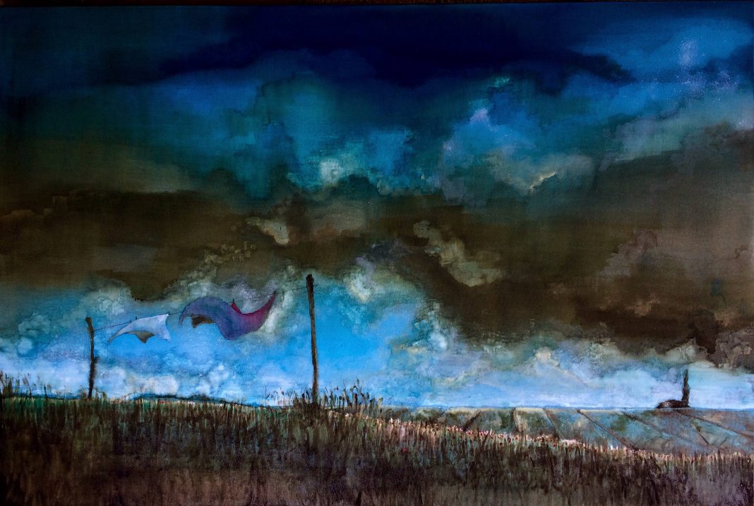 I paesaggi di Luca Gastaldo sono costituiti da cieli dai toni freddi dell’azzurro. Azzurro, che diventa blu, verde oppure si nasconde nelle terre bruciate delle tonalità dei marroni.