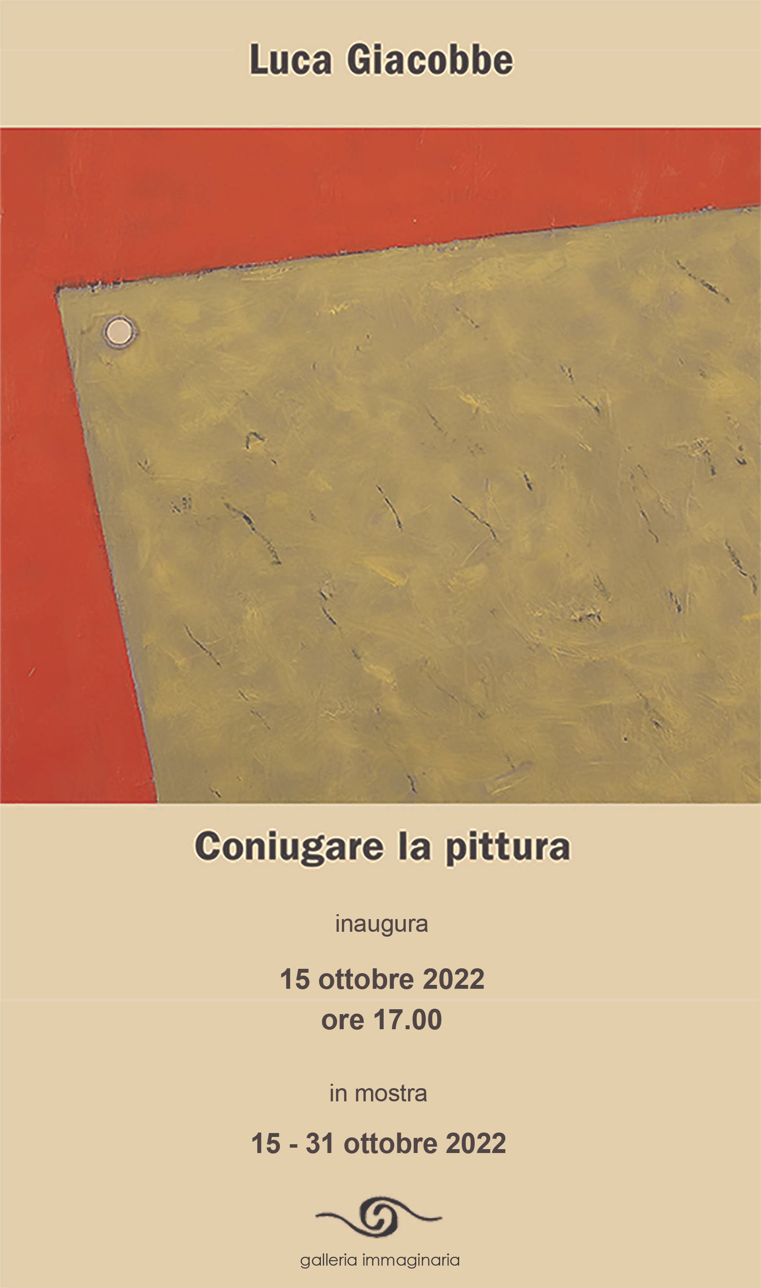 Inaugura sabato 15 ottobre 2022 alle ore 18 presso la Galleria Immaginaria di Firenze, la mostra “Coniugare la pittura” dell’artista Luca Giacobbe.