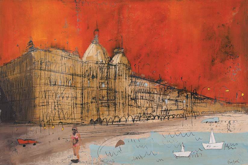 Da sempre Luca Giovagnoli considera la pittura una questione personale. Il mondo a cui si ispira è un teatro denso ricordi e di visioni immediate, un teatro che calca da vent’anni con scenografie di sabbia, con cattedrali dai tetti arabescati, con personaggi presi a prestito dai fumetti quali generali da accostare a semplici paperelle. Dice di riprendere il mondo camminando a due passi da casa fondendo gestualità e immaginario sino alla stesura di un racconto denso di richiami dove il lirismo si associa al fiabesco. “La spiaggia – ricorda Franco Basile nello scritto del catalogo che accompagna la mostra – è un pozzo da cui l’artista riminese ricava buona parte del materiale dei suoi lavori. A volte egli si porta lungo l’arenile per inseguire una lontana memoria, o per cancellare un’ombra di tristezza”.