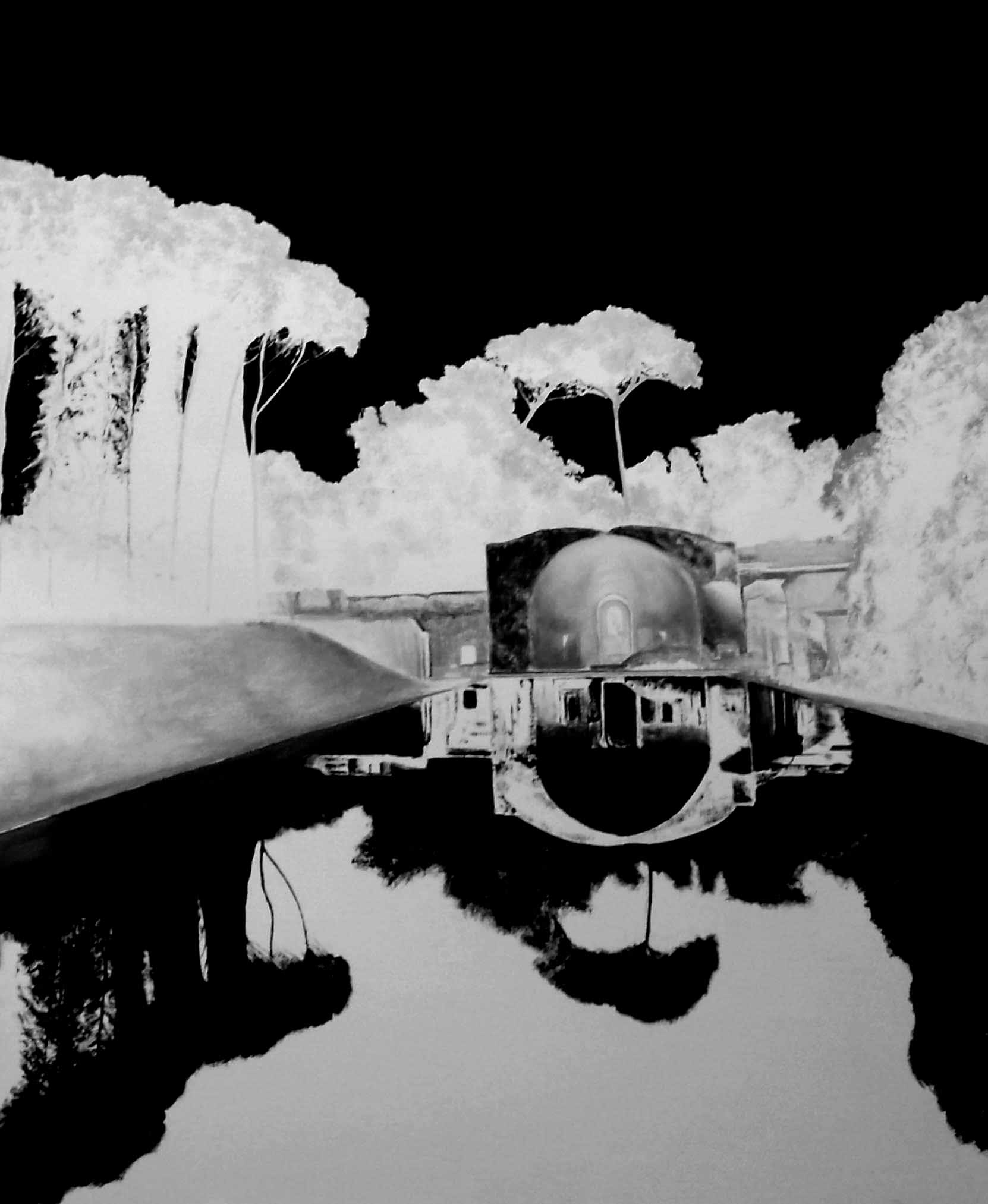 Attraverso l’uso di volute “infedeltà” nella distorsione della luce, delle ombre e della prospettiva, approda ad uno spazio interpretativo che si pone tra reale ed irreale, tra pellicola fotografica e costruzione pittorica.