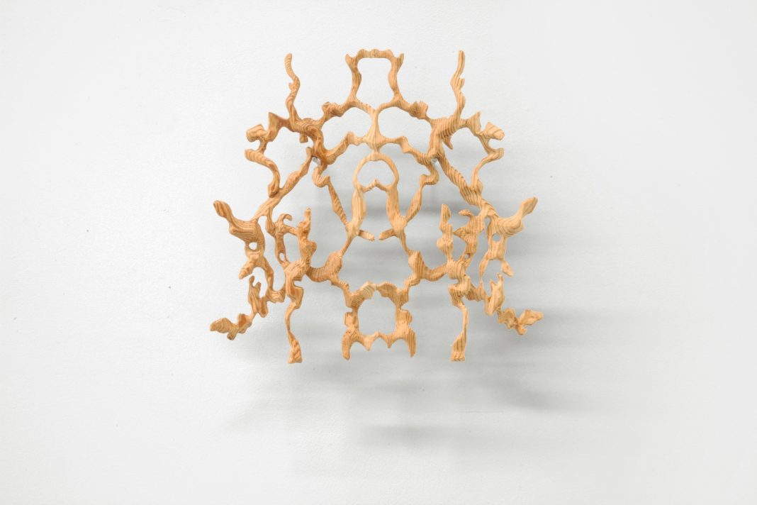 Tre le serie principali che documentano la ricerca dell’artista spiccano Un punto fra due cieli, Icaro fa le funzioni e Variazioni. Se le sculture lignee, leggerissime, del ciclo Un punto fra due cieli ci invitano a riflettere su un’idea di altro – si potrebbe parlare di un paradosso, un cielo che contiene dentro di sé un altro cielo –, il cartongesso inciso di Icaro fa le funzioni ci pone davanti alle soglie della nostra percezione, facendoci capire che solo se distogliamo lo sguardo dall’oggetto in sé e lasciamo che la nostra attenzione cada sull’immateriale, allora siamo in grado di sentire la presenza di ciò che non possiamo vedere. La nuova serie, Variazioni, si sviluppa infine a partire dai disegni provenienti da Un punto fra due cieli che, nel cartongesso inciso, vengono ingigantiti, distorti e lavorati.